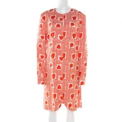 Kick-start your weekend on a lively note with this exquisite orange creation. This silk dress brings long sleeves, a back zipper and prints of hearts all over. This Stella McCartney dress will be a major win this season.