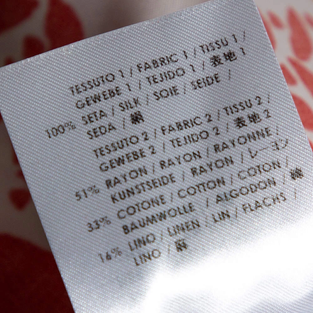 - Composition: Fabric A: 100% silk; Fabric B: 51% rayon, 33% cotton, 16% linen
