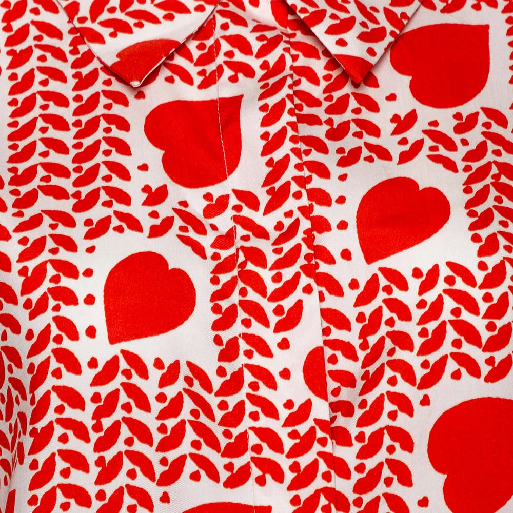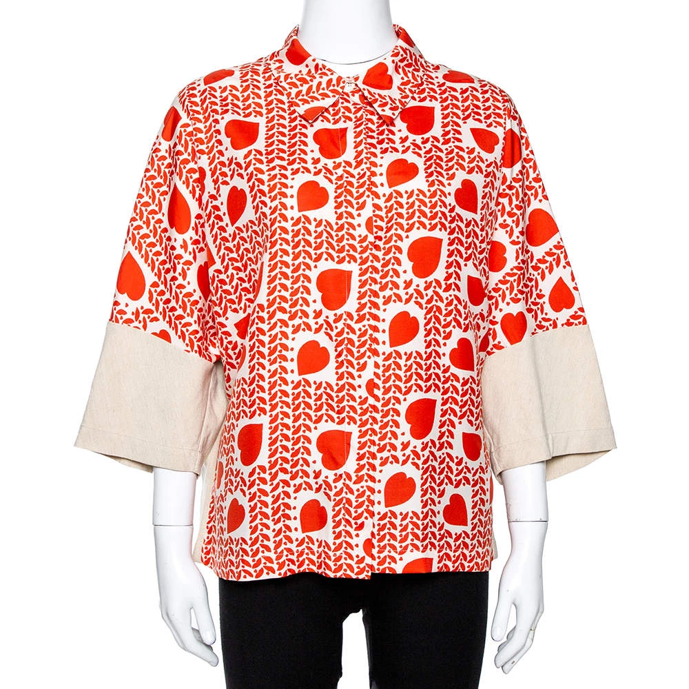This bold and playful blouse will make sure you wear your heart on your sleeve! Crafted from silk and linen, this lovely orange-hued creation has a heart print throughout. The blouse has panel detailing on the sleeves & back and a chic collar to finish.