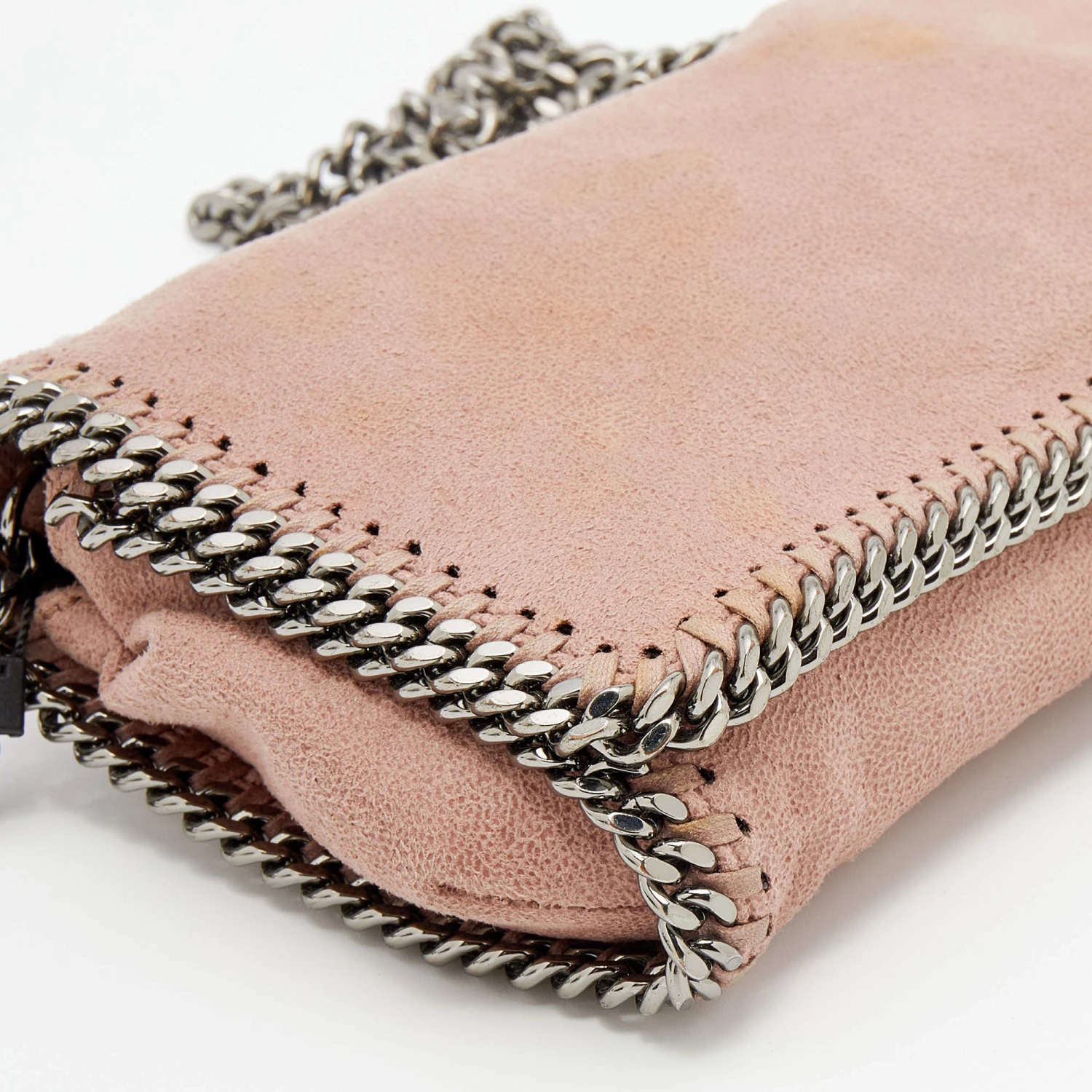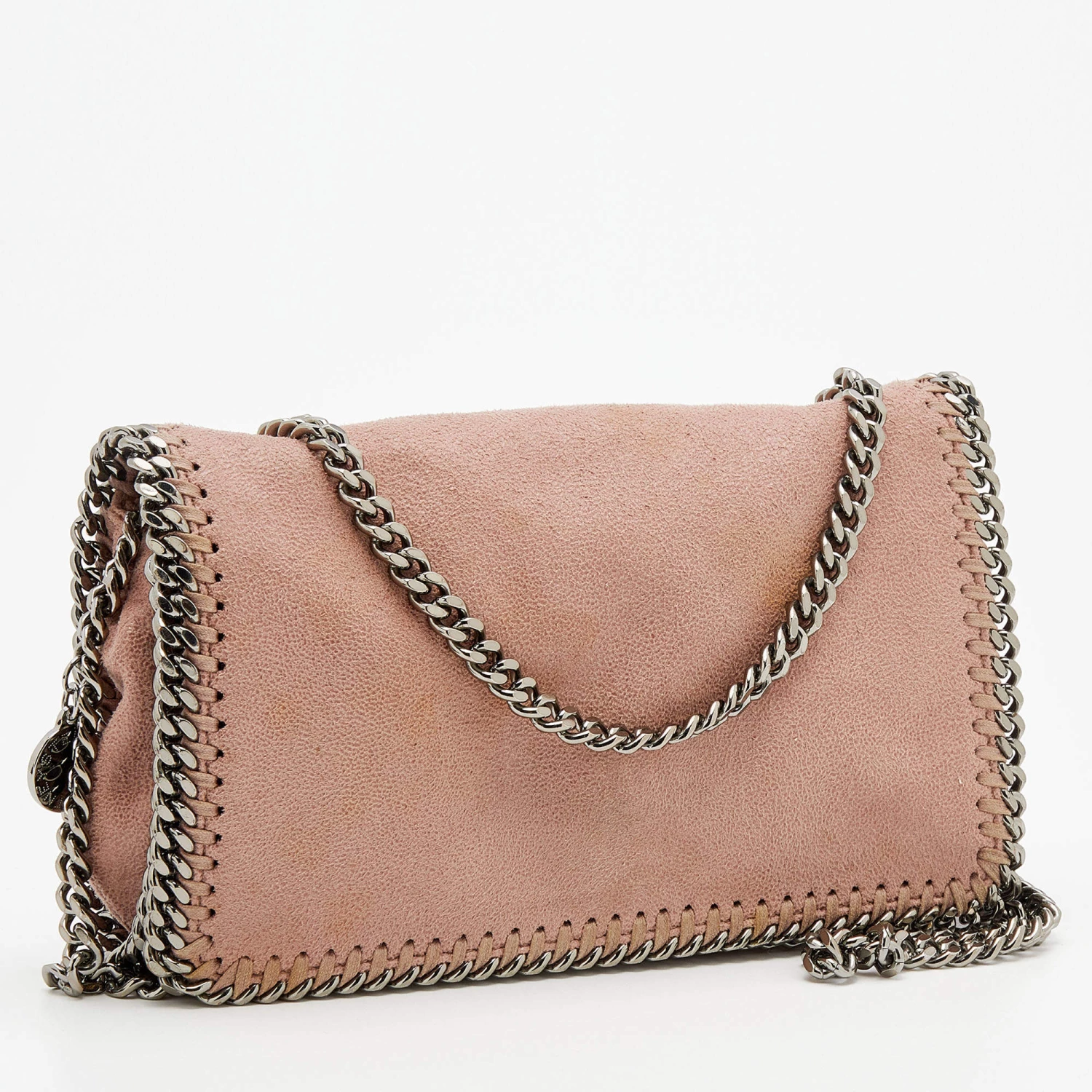 The chain whipstitch detailing beautifully outlines this Stella McCartney Flabella bag. Crafted from faux leather, it has been adorned with silver-tone accents, and it can be carried with a chain shoulder strap. The fabric-lined interior can safely store your party essentials and is secured by a flap closure.