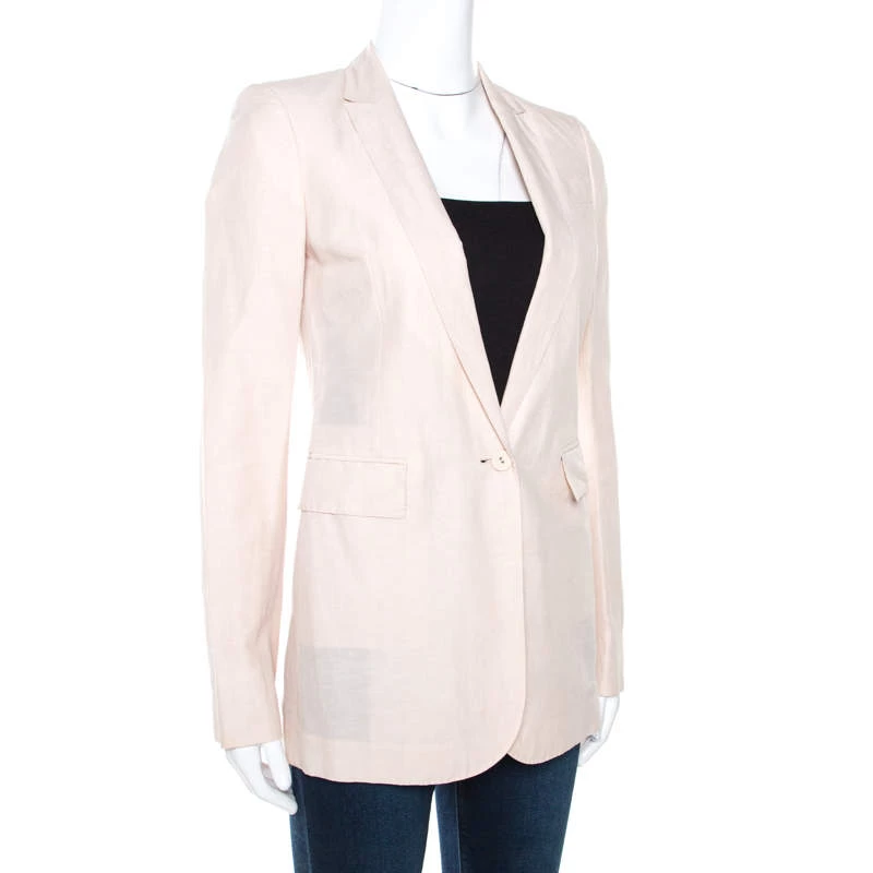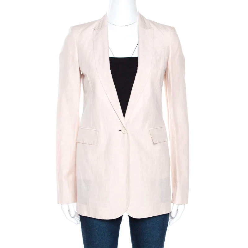 This Stella McCartney blazer is designed to lift your wardrobe. The linen-cotton blazer features sharp-cut lapels, a front button and a pale pink hue. Tailored to fit you perfectly, this piece will offer a smart, formal look.