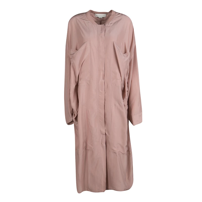 Relaxed and easy-to-wear outfits dominated the Spring Summer 2015 collection of Stella McCartney. This tunic is crafted with 100% silk in a neutral pale pink hue. Designed in a contemporary style with long sleeves and loose structure, the outfit features side slit for the freedom of movement. Team this with boots for a bold look.