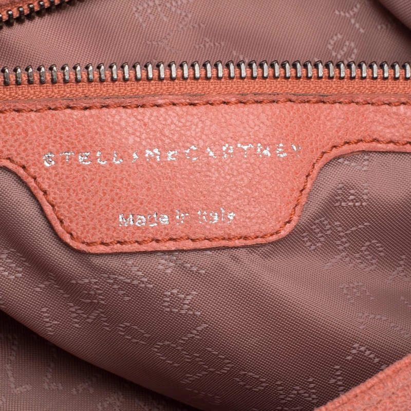 Stella McCartney is known for her chic designs and this Falabella bag perfectly embodies this trait. Crafted in Italy from peach faux leather with a fabric interior, this bag has a beautiful exterior and black tone chain details at its contours and handle. This bag can be carried with your everyday outfits.