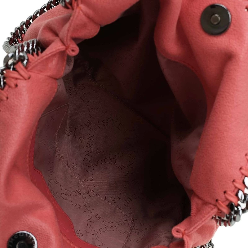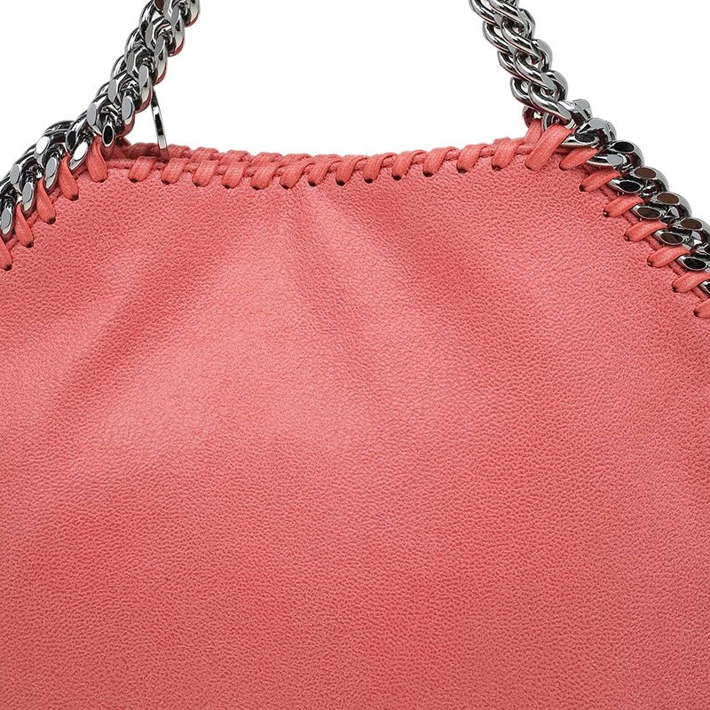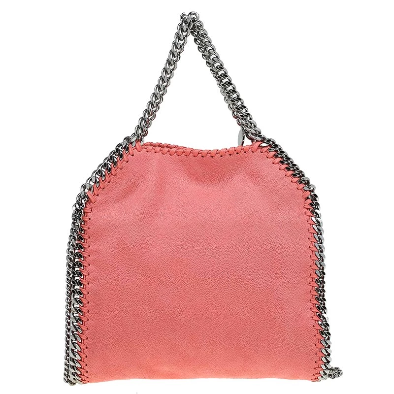 The iconic ‘Falabella’ tote from Stella McCartney has been made from peach faux brushed leather. It has been hand finished and features whip stitched trims and chain detailing. The snap top closure opens to a fabric-lined interior. Its slouchy silhouette makes it easy to fold it so it doubles up as an oversized clutch.