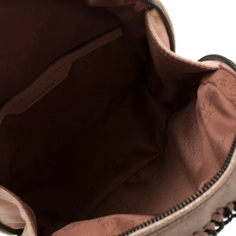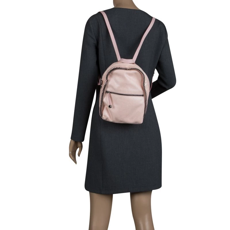To accompany all your casual outings in the most fashionable way, Stella McCartney brings you this Falabella backpack that boasts of fabulous style and outstanding details. It flaunts a pink exterior with a front zip pocket and signature chain details. The bag is held by a top handle and two shoulder straps. You’ll surely love calling this backpack your own.