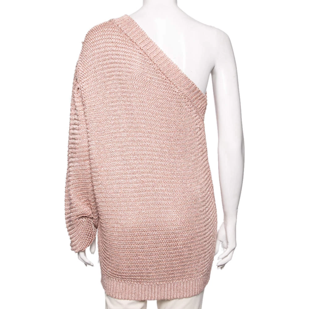 This jumper from the House of Stella McCartney will be your favorite pick for this winter. Stylish and comfortable, this jumper is tailored using pink knit fabric into a one-shoulder silhouette. Match this jumper with statement accessories and make a chic fashion statement.