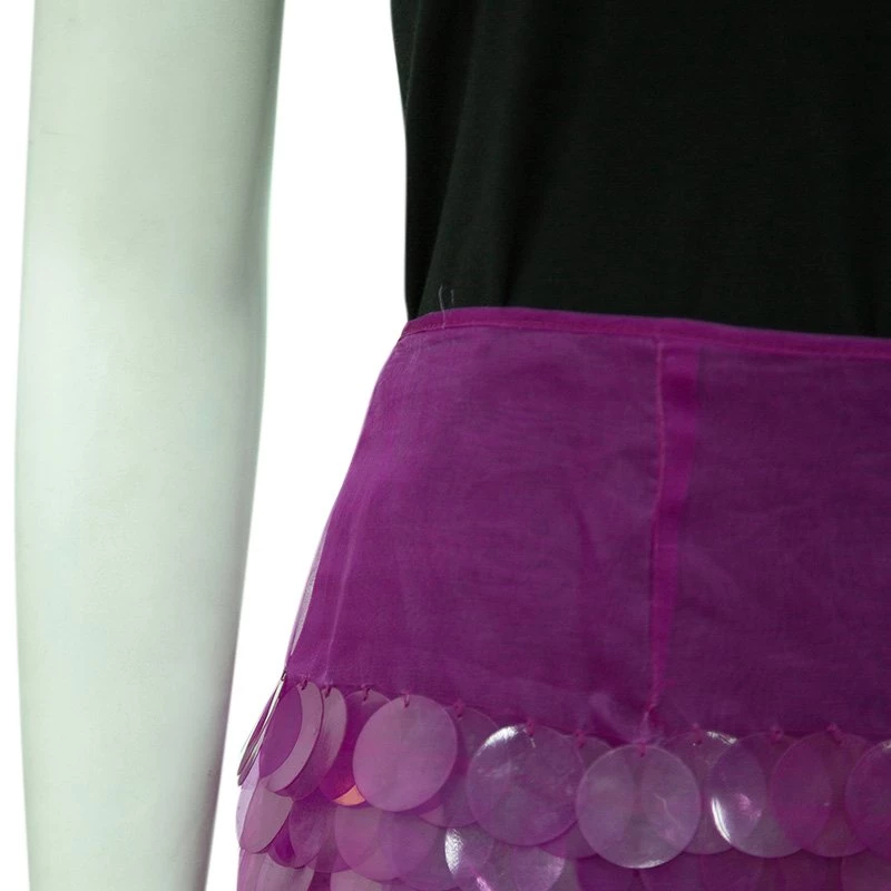 This bright pink organza skirt is embellished with large paillettes and the delicate fabric is protected with a full lining. The Stella McCartney paillette mini skirt fastens at the back with a concealed zip. This miniskirt is perfect to pull off an effortless style – in line with Stella McCartney’s design aesthetic.