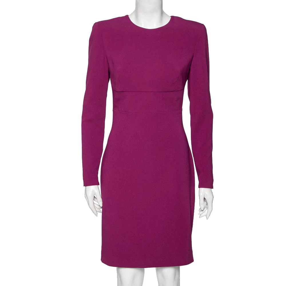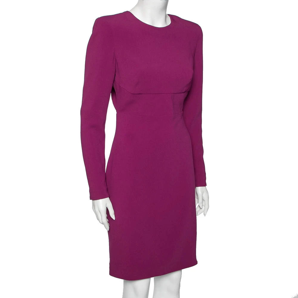 Brought to you by Stella McCartney, this shapely and beautiful dress will add effortless elegance to your ensemble. It is tailored using purple crepe fabric into a mini-length silhouette. It is highlighted with long sleeves and a cut-out detail at the back. It has a zipper. Make a fashion statement by wearing this dress.