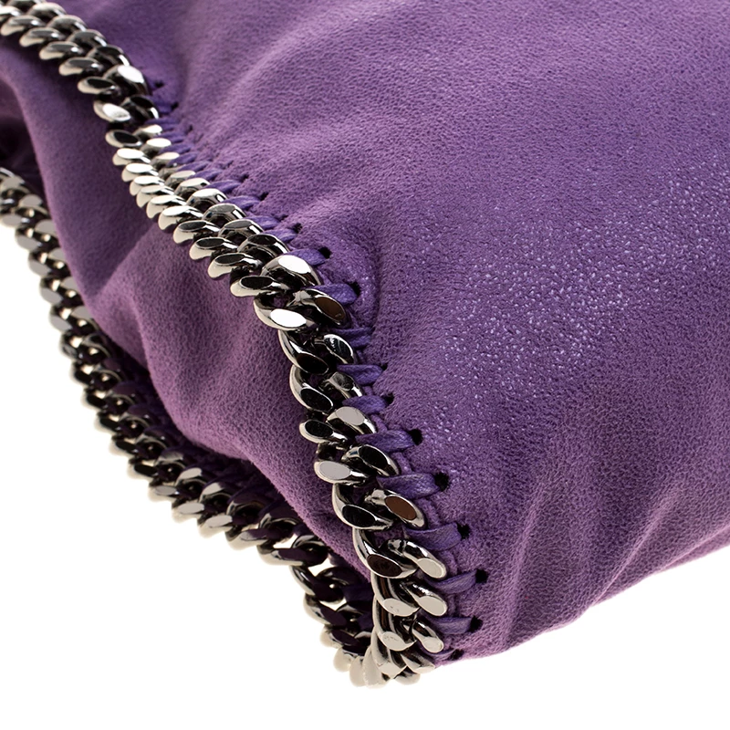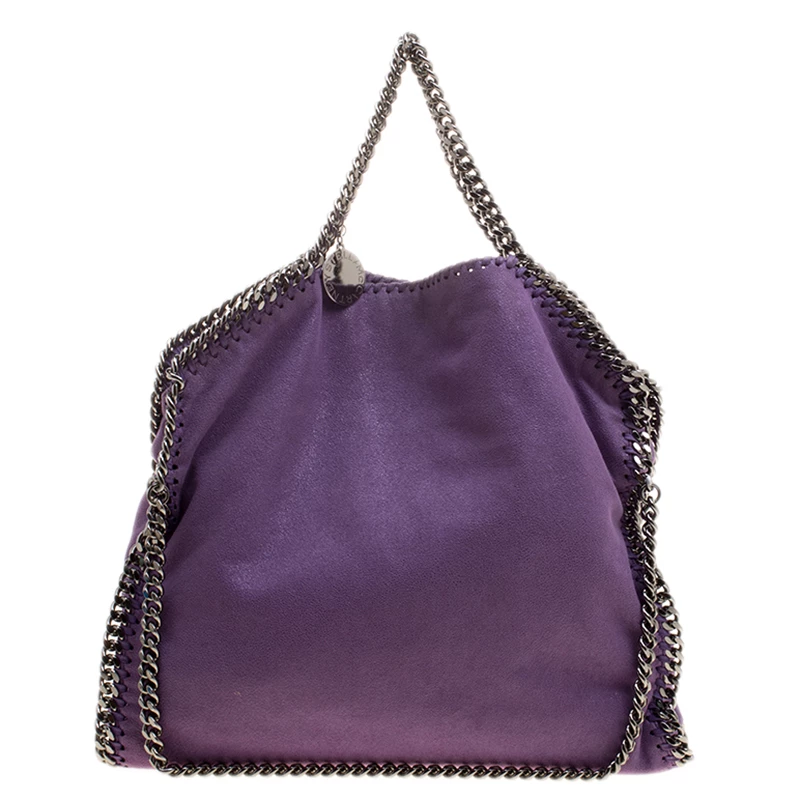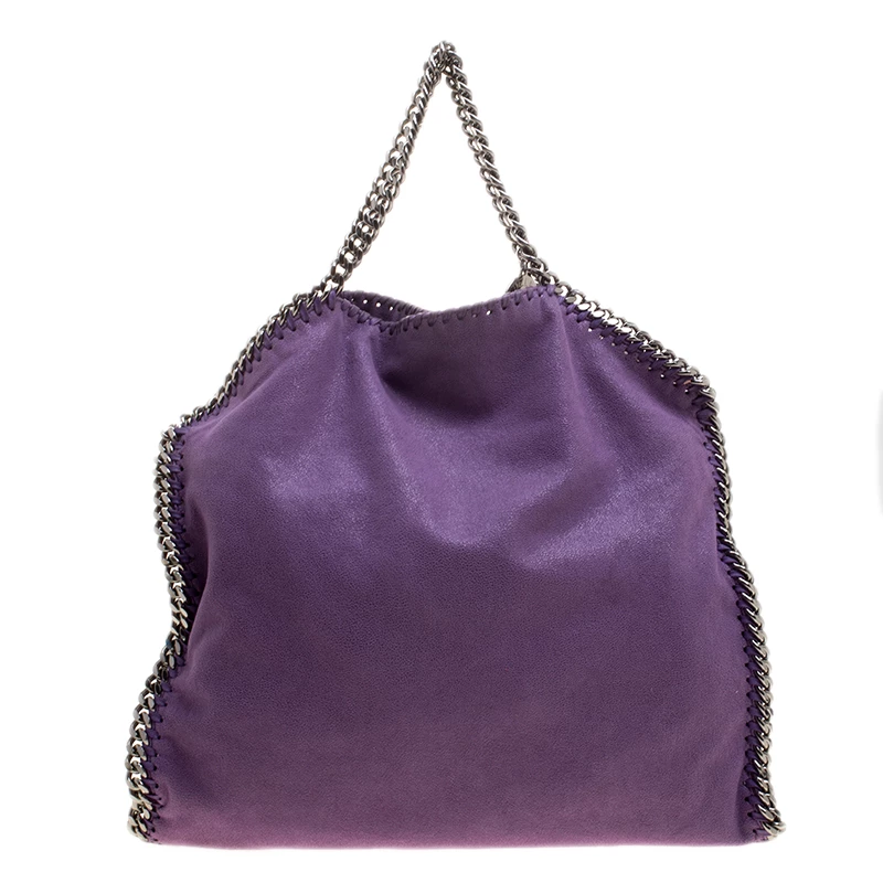 Stella McCartney is known for her chic designs and this Falabella tote perfectly embodies this trait. Crafted in Italy from purple faux leather with a fabric interior, this tote has a beautiful metallic exterior and black tone chain details at its contours and as handles. This bag can be carried with your everyday outfits.