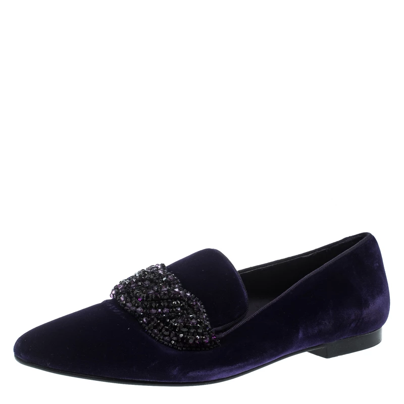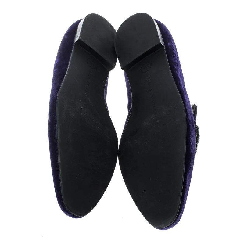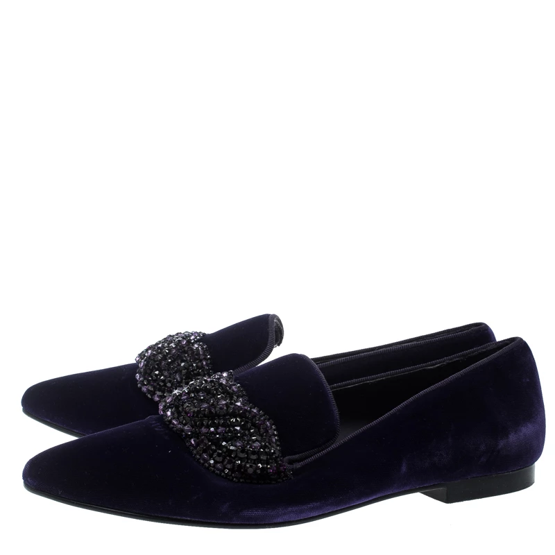 To perfectly complement your attires, Stella McCartney brings you this pair of smoking slippers that speak nothing but beauty. They’ve been fabulously crafted in purple velvet with intriguing crystal embellishments on the vamps that lend an elegant touch to this subtle pair. The comfy slippers are easy to slip on and they are just the right choice to complement your fashionable side.