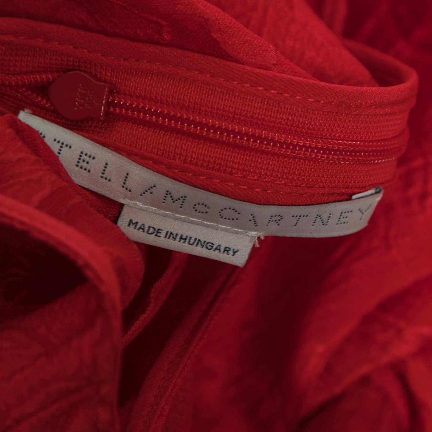 This bright and bold red Stella McCartney dress is captivating. Crafted in brocade silk and cut to flatter the body with a belted design, the fit is fluid and elegant. Wear the long-sleeved dress with wedges and minimal earrings.
