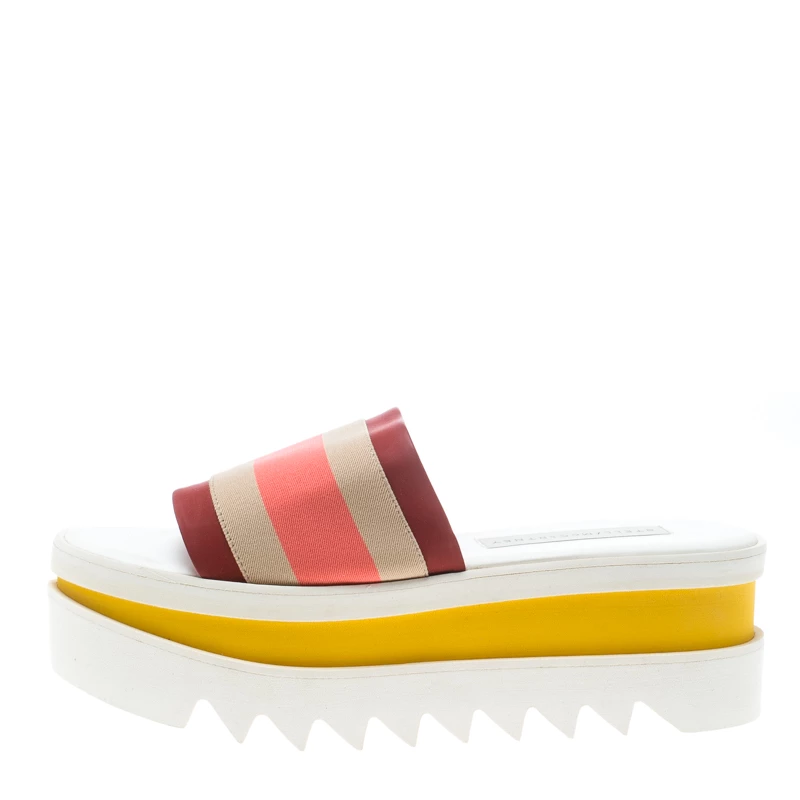 Wearing Stella McCartney just gives one a soothing feeling because of the fact that her designs are all high-fashion and eco-friendly. From her very famous label, comes this pair of slides that are made from faux suede as well as twill tape, and styled with catchy colours and high platforms set in a modern way.