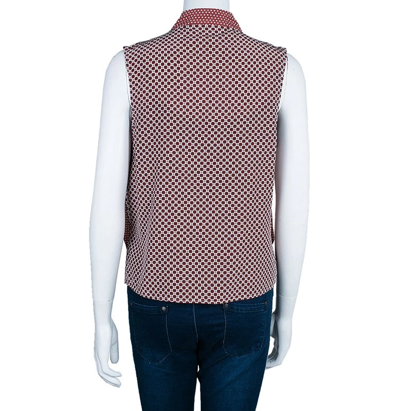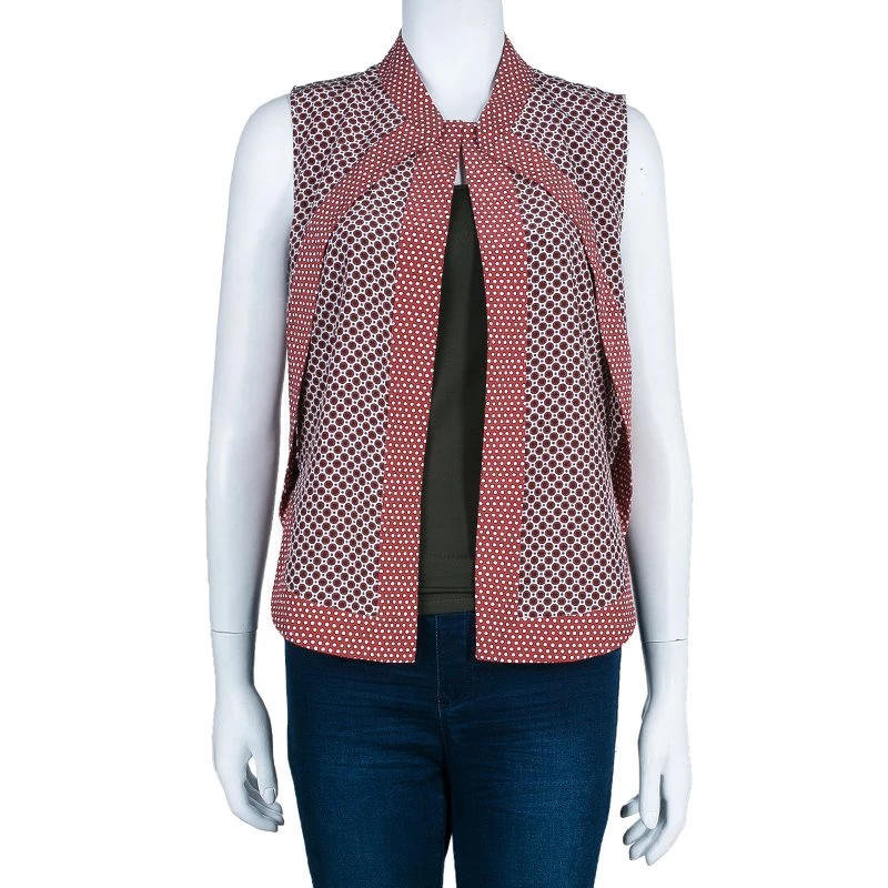 Edgy with a feminine touch, this jacket from Stella McCartney is a piece you have to own. Made from silk, the jacket features a red dotted pattern, sleeveless cut and an open front. A perfect jacket for a girl who’s always on the go.
