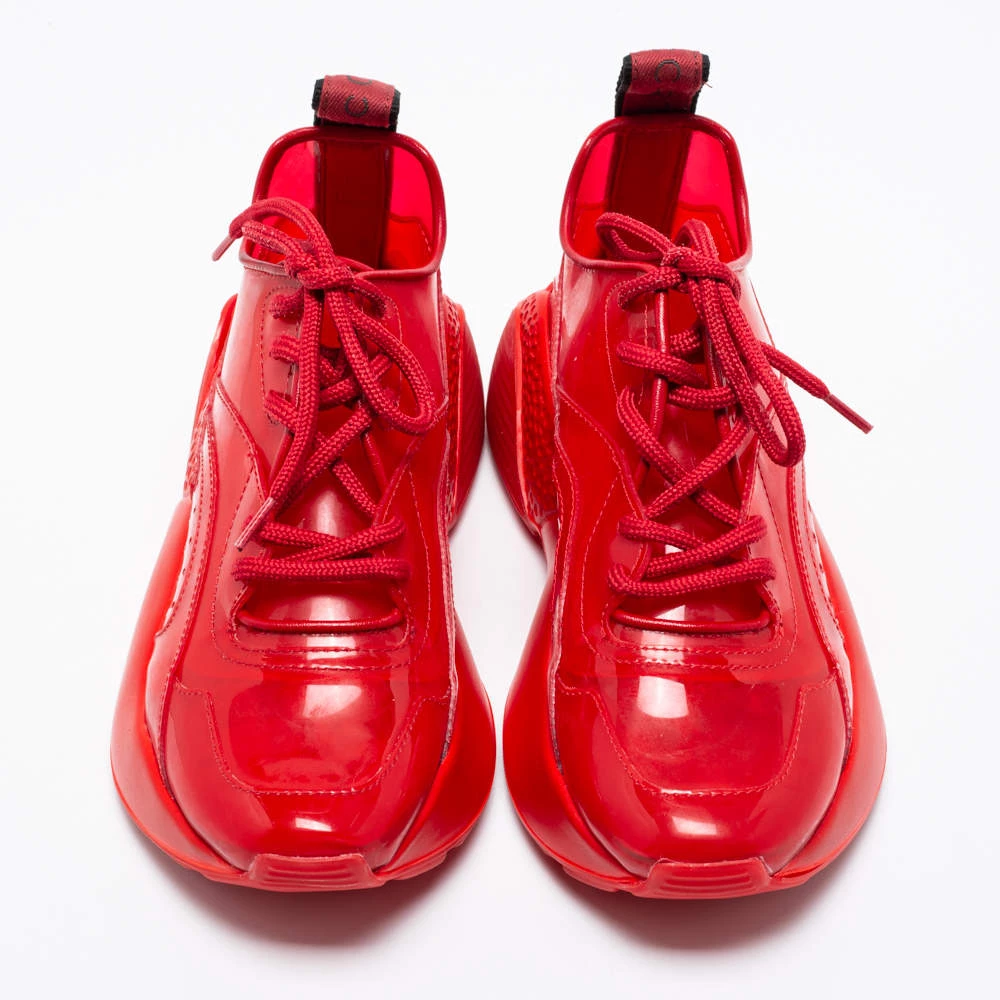 Stay in comfort with these sneakers from Stella McCartney. Crafted with a combination of PVC, these red kicks have textured soles along with lace-up closure on the uppers. Comfortable fabric lining and tough rubber soles complete these Eclypse sneakers.