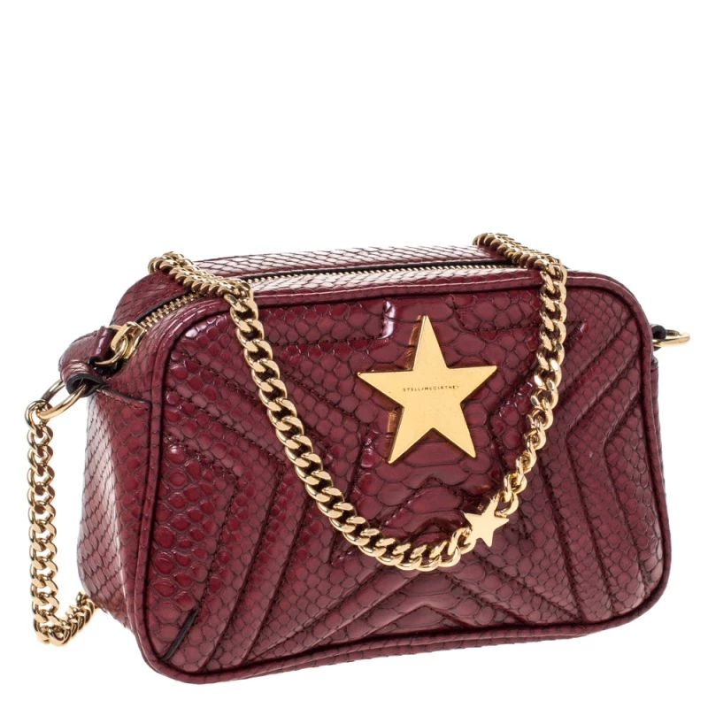 Carefully designed to evoke a grand and stately look, this python-embossed faux leather bag is sure to make heads turn. Its exterior is accented quilted patterns and a gold-tone star motif at the front face. The faux suede lining ensures an immaculate finish. It is complete with a gold-tone chain-link shoulder strap. Fall in love with this absolutely amazing bag from Stella McCartney.