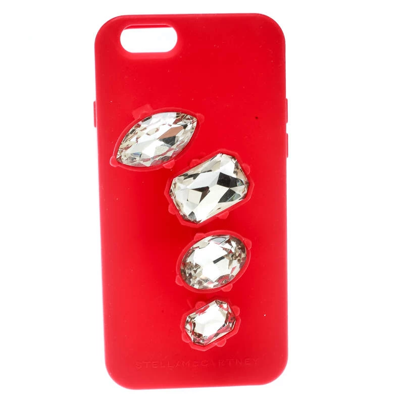 This cute case from Stella McCartney is for iPhone 6 users. It is made from red rubber and it has 4 rings set with large crystals to offer better grip. The case will protect your phone and complement your style at the same time.