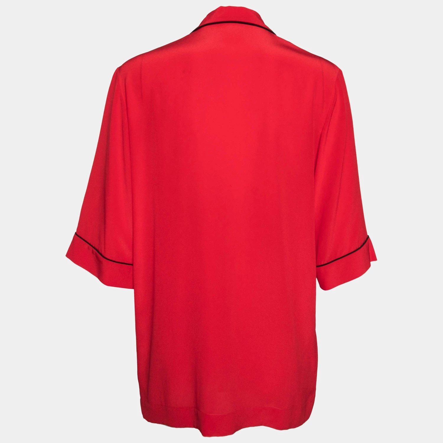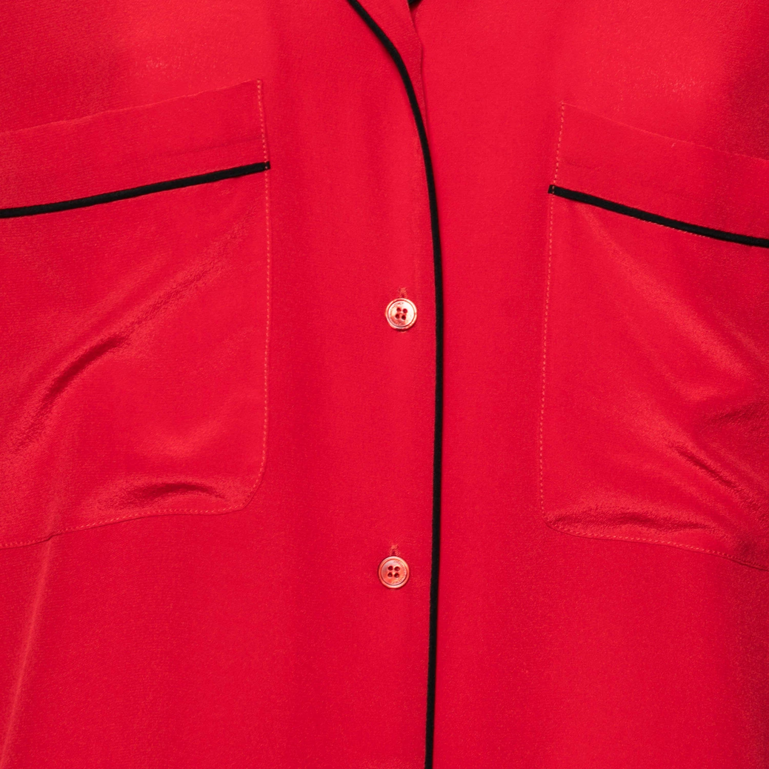 Made from silk, the contrasting trims against the red body make this Stella McCartney shirt more desirable. It is characterized by front button fastenings, short sleeves, and external pockets.