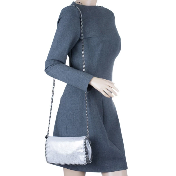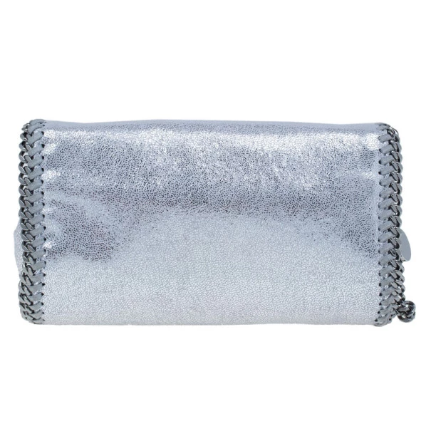 Dress up your outfit with this fashion forward Falabella Clutch by Stella McCartney. This flap over style clutch is made from faux leather with polished silver chain link trim that features two Stella McCartney engraved round charms. The interior is lined with pink monogrammed canvas and features one patch pocket.