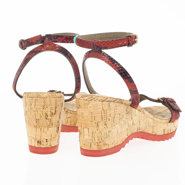 These Stella McCartney Snake Embossed Linda Cork Wedge Sandals are stylish and fun shoes you will absolutely love. They are made from faux snake embossed leather with front toe straps and ankle straps. Their insoles are unlined.