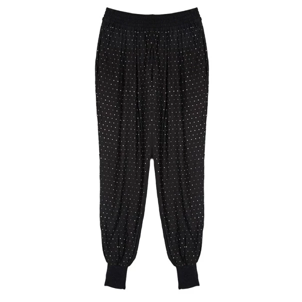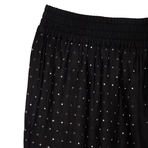 Opt in for a chic yet fun look with these harem pants by Stella McCartney. They feature elastic ankles and waist. They are accented with sparkling aluminum embellishments.