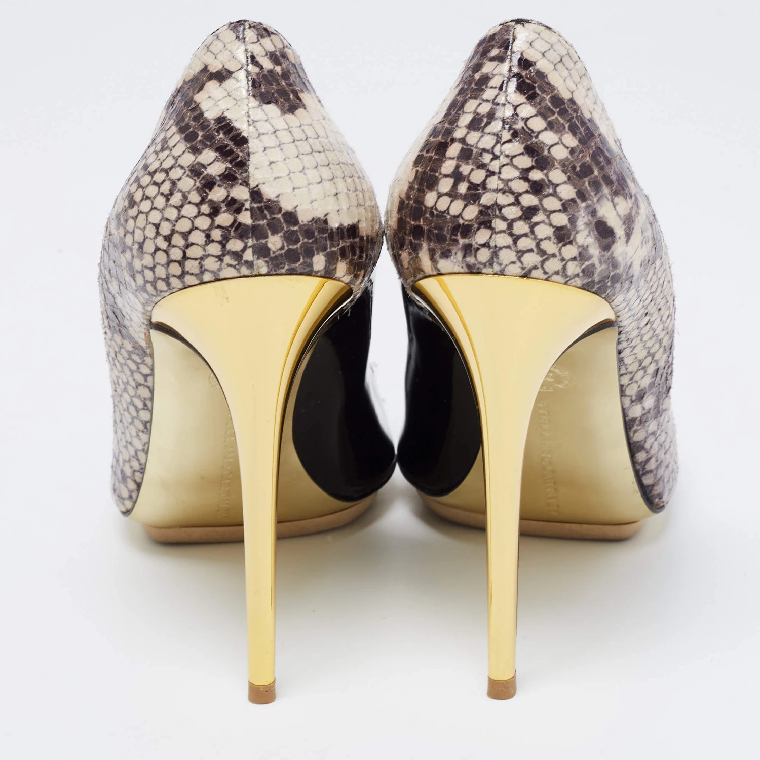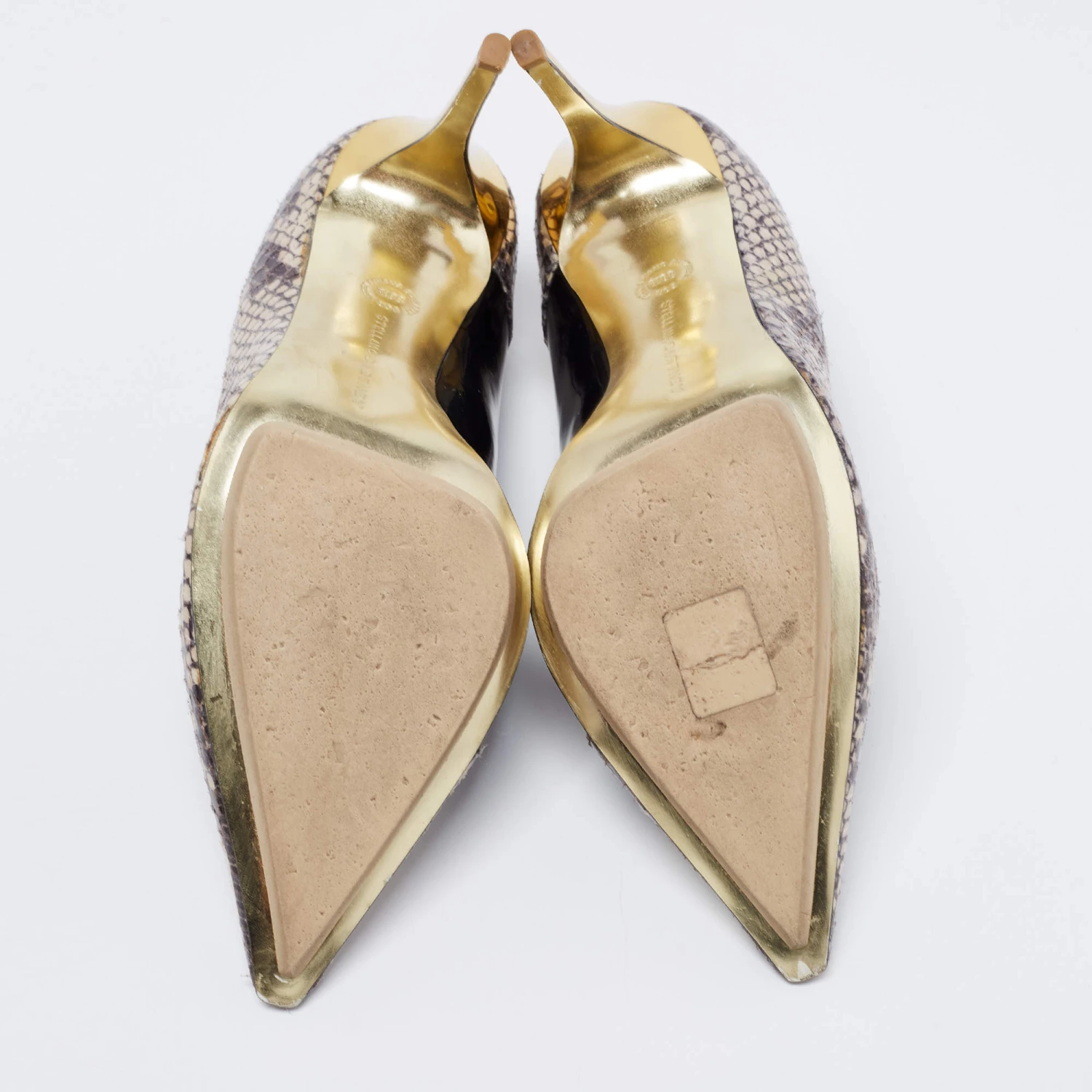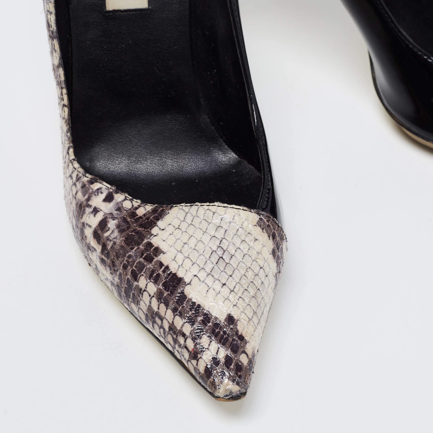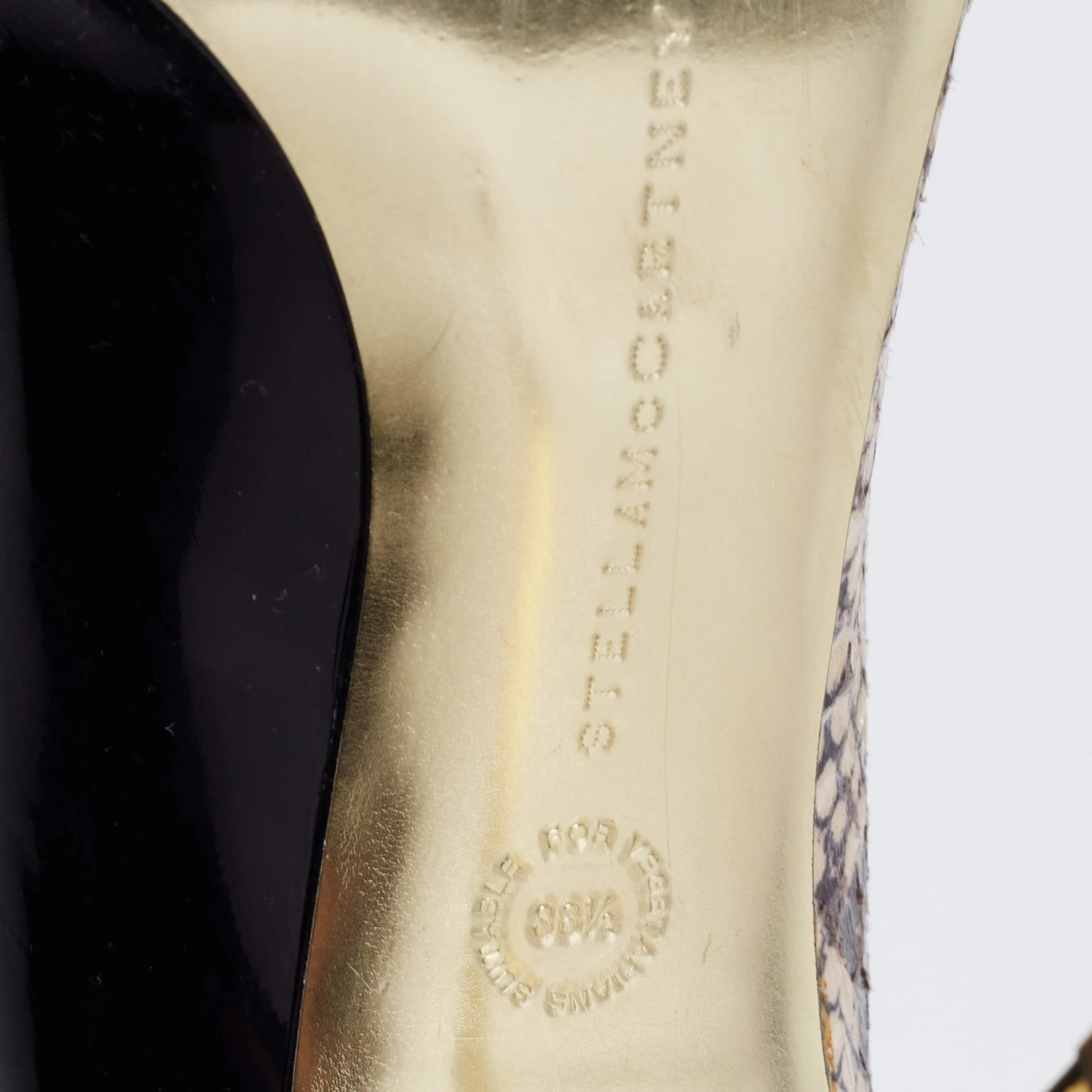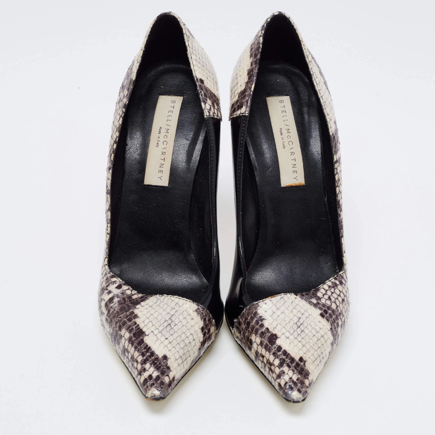 With an elegant d’Orsay cut, this pair of Stella McCartney pumps will fashionably frame your feet. It is beautifully created from snake-embossed leather along with faux patent leather and these shoes are appealing in tri-color. The 11cm heels of this pair will effortlessly class up your looks.
