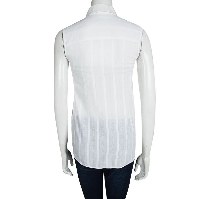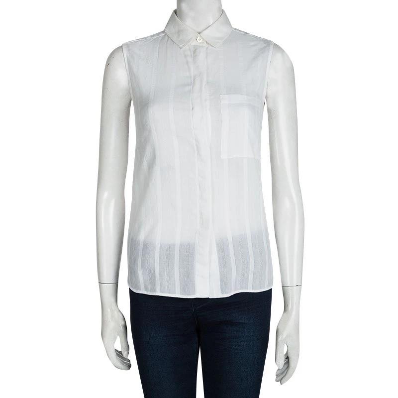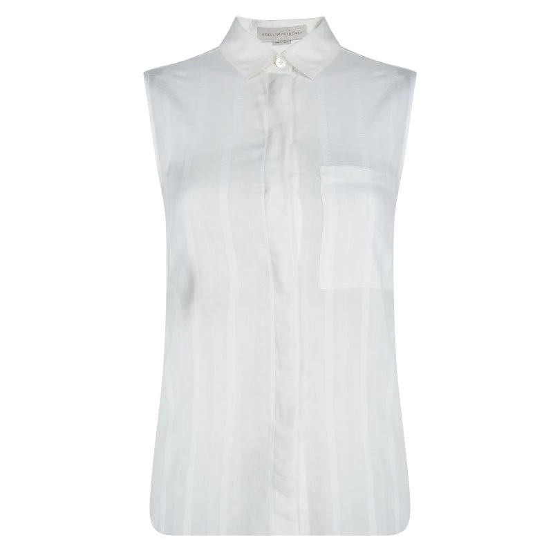 Redefine the classic look with this sleeveless white shirt from Stella McCartney. It will lighten up your summers as it is 100% cotton-made, and will surely provide you a blend of comfort and ease. Complete the ensemble with a pencil skirt and bright earrings.
