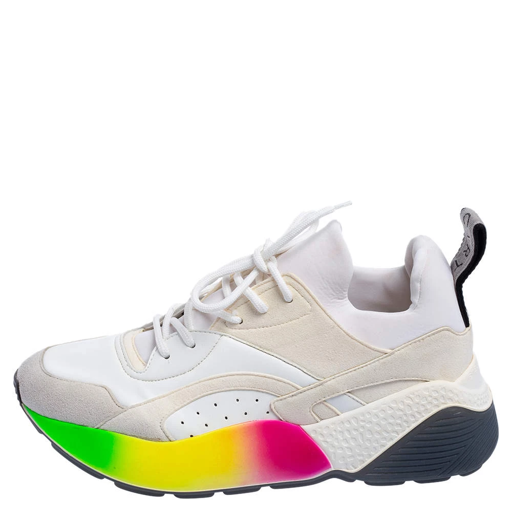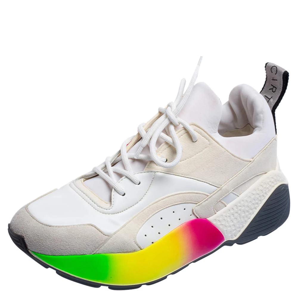 Stella McCartney White Faux Leather And Faux Suede Eclypse Low-Top Sneakers Size 39 For Women