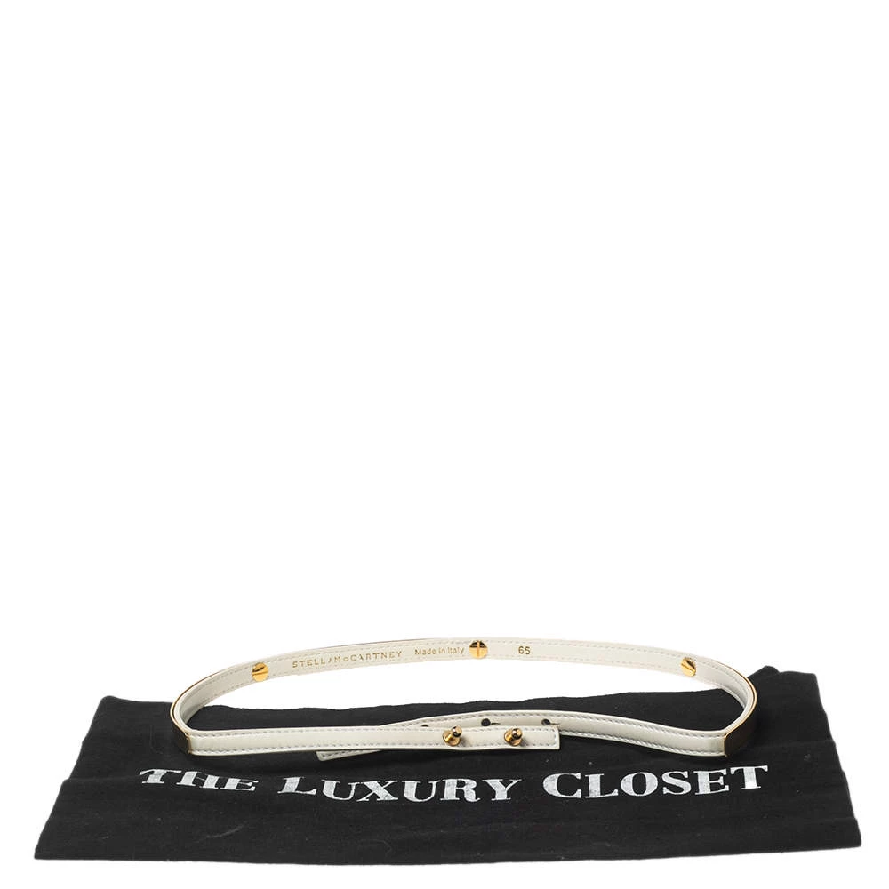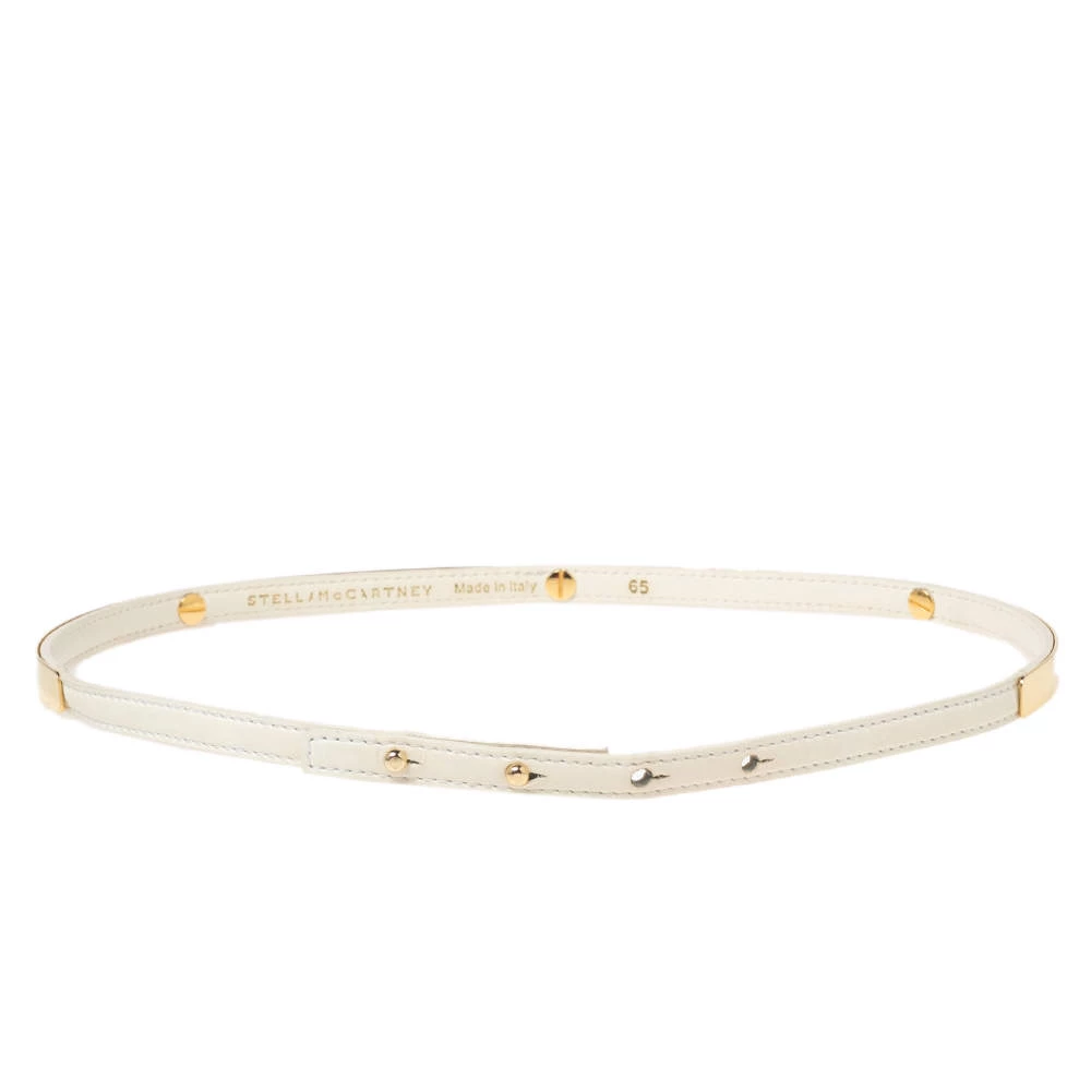 This slim belt from Stella McCartney will ensure a grand finish to your ensemble. It is crafted using white faux leather and highlighted by gold-tone metal. This belt is made in Italy.
