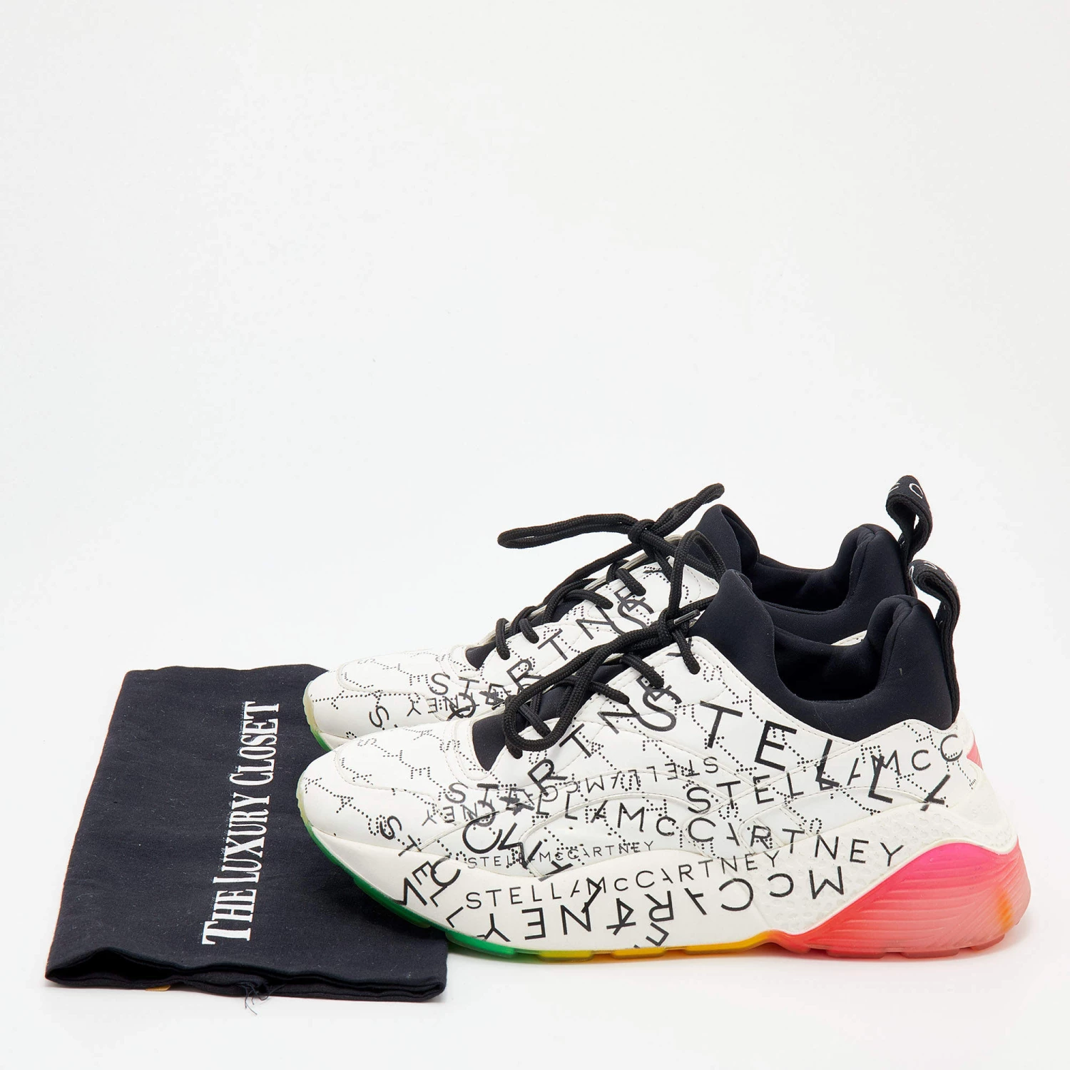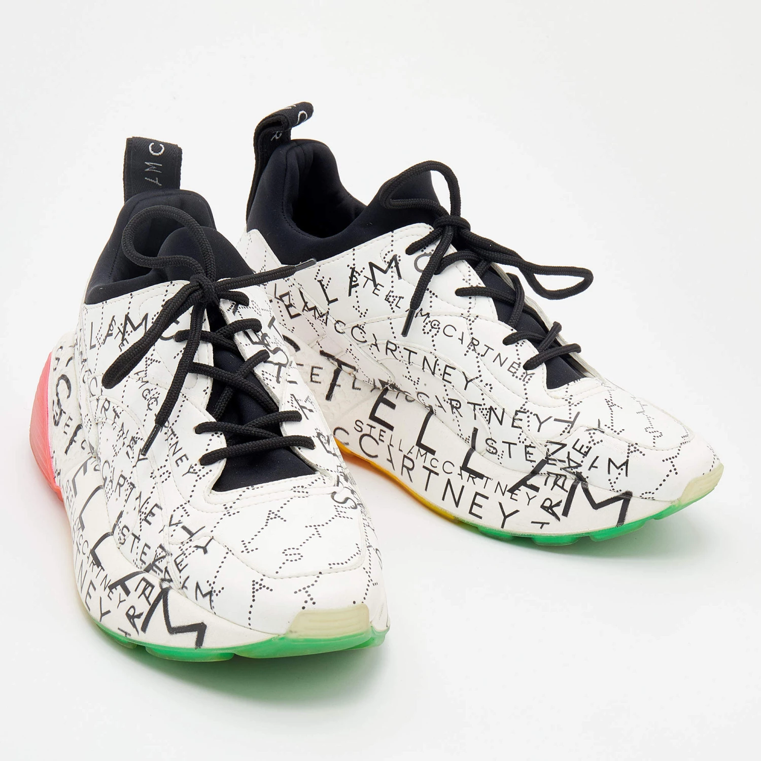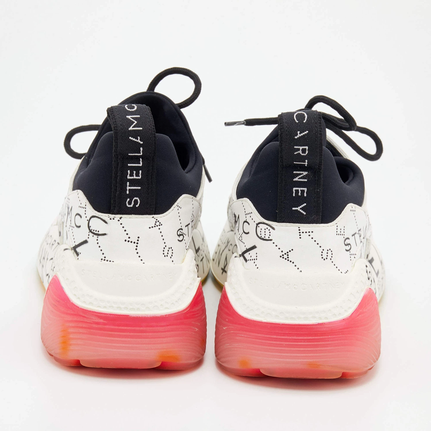 Stella McCartney White Faux Leather And Neoprene Eclypse Monogram Logo Platform Sneakers Size 40 For Women