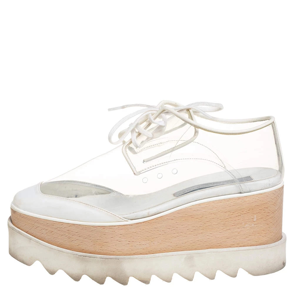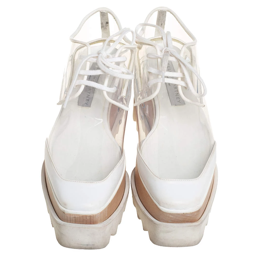 Stella McCartney White Faux Leather And PVC Elyse Platform Sneakers Size 35.5 For Women