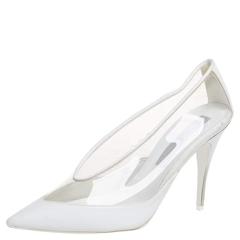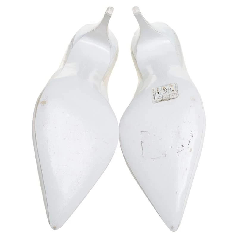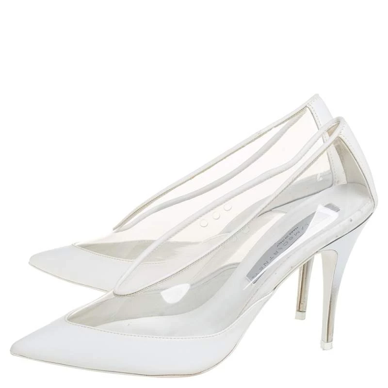Stella McCartney White Faux Leather And PVC Pointed Toe Pumps Size 36.5 For Women