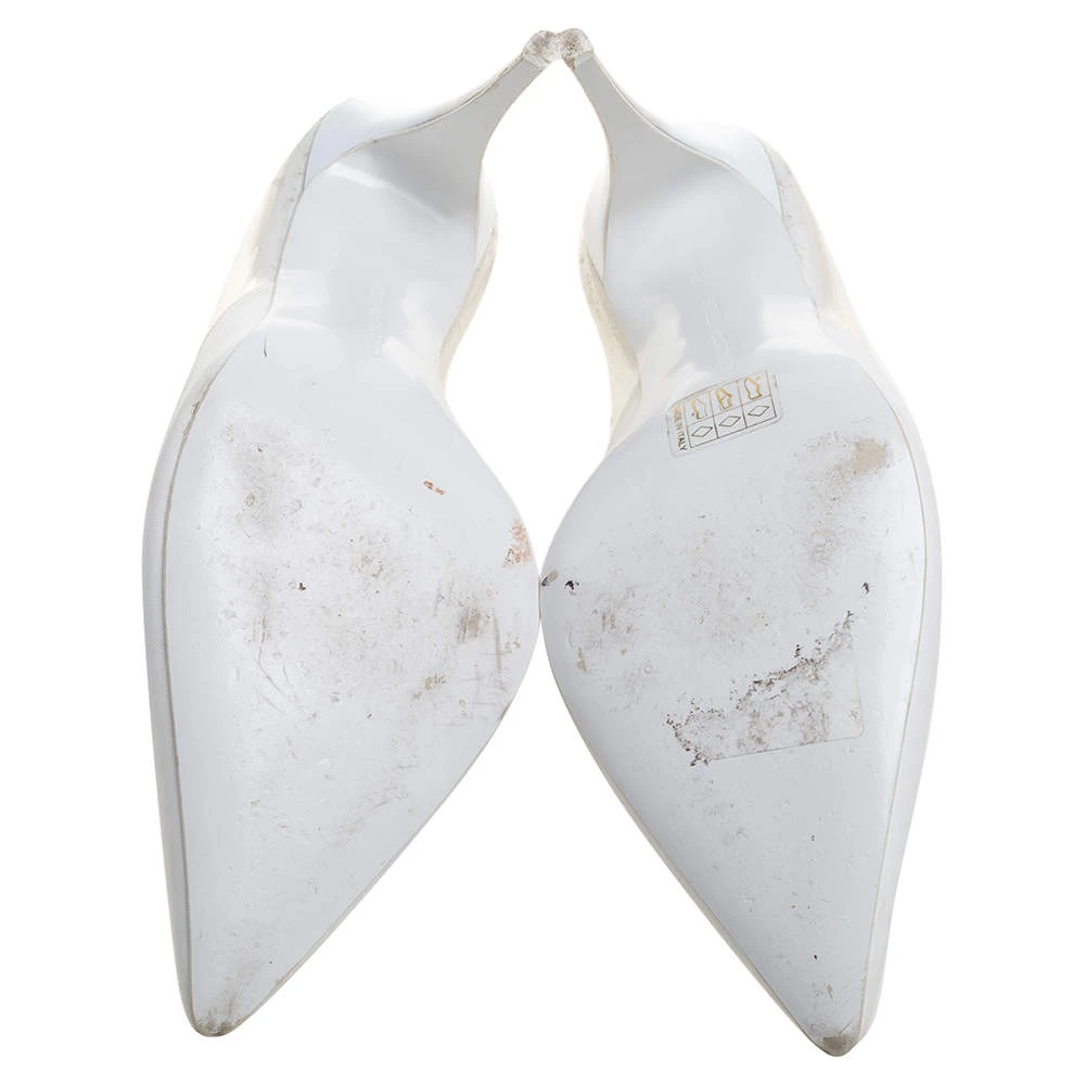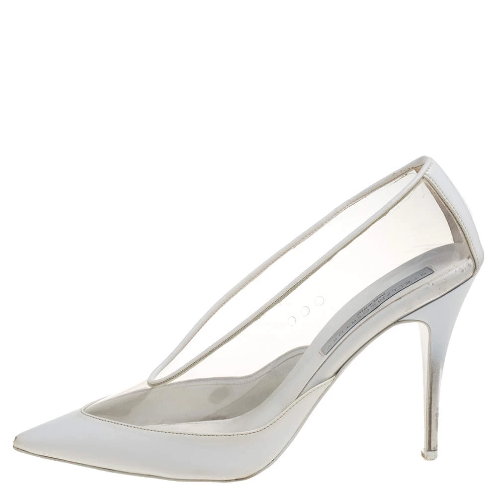 Strikingly beautiful, these Stella McCartney pumps will help you walk in style! They come crafted from white faux leather and PVC and feature pointed toes. They are equipped with comfortable insoles and stand tall on 11 cm heels.