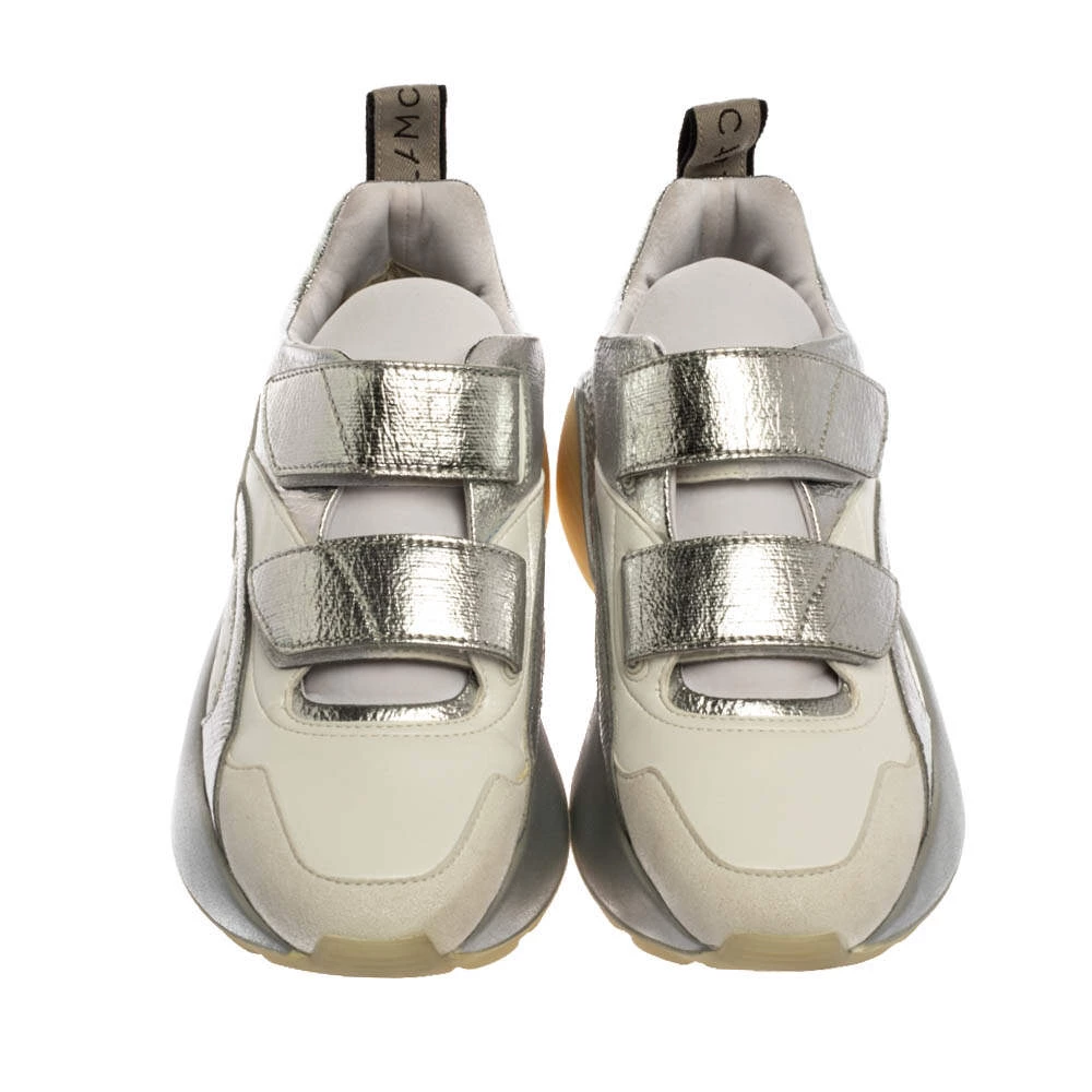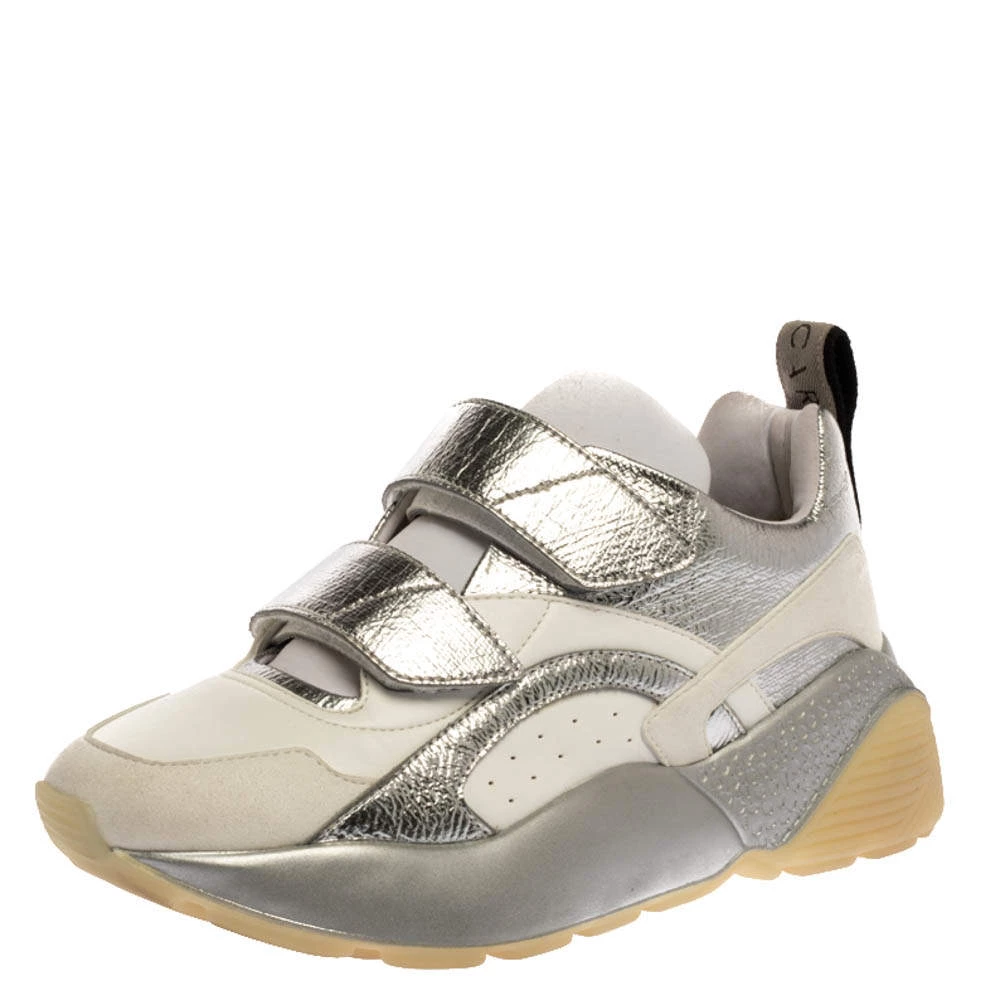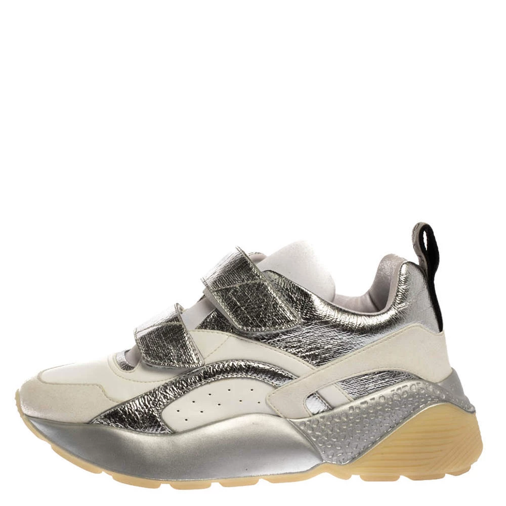 Stay in comfort with these sneakers from Stella McCartney. Crafted using faux leather, this pair has rock-textured soles along with lace-up closure on the uppers. Comfortable fabric lining and tough rubber soles complete these Eclypse sneakers.