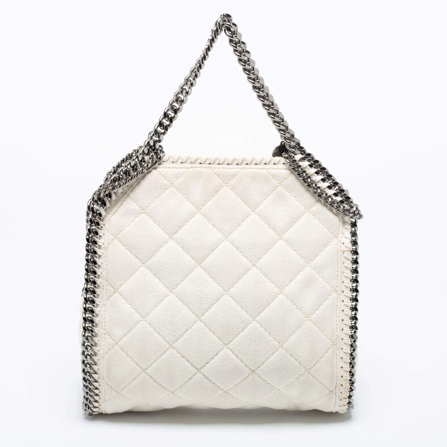 The chain whipstitch detailing beautifully outlines this Stella McCartney Falabella tote. Crafted from faux suede, it is adorned with silver-tone accents, and the bag can be carried with dual chain handles. The fabric-lined interior of the bag can safely store your party essentials.