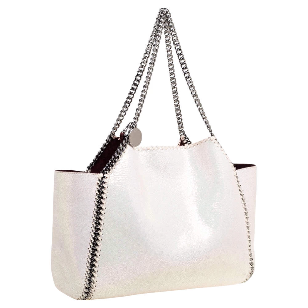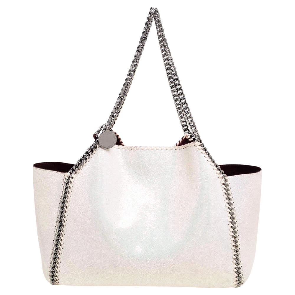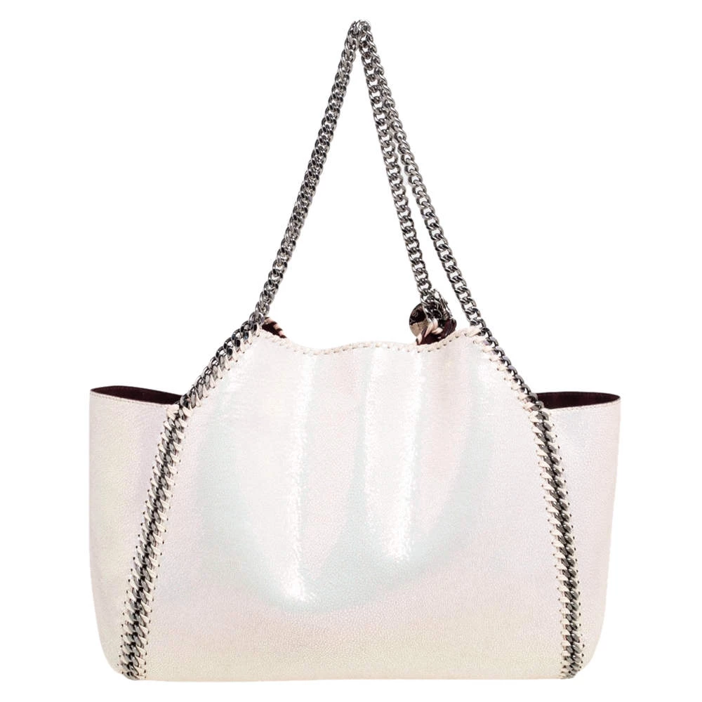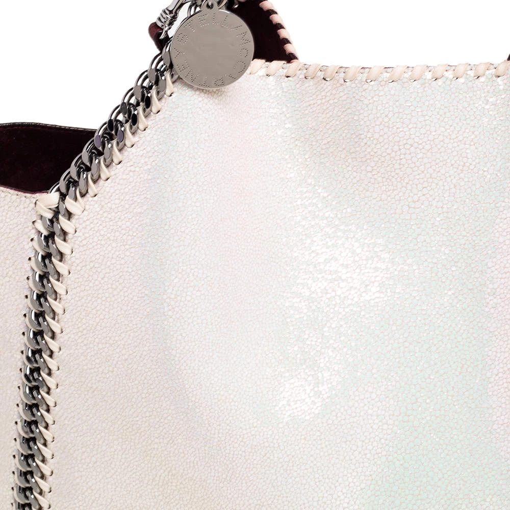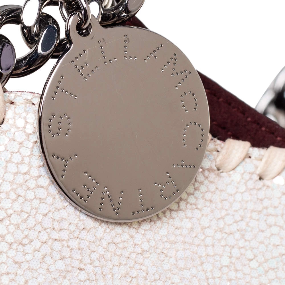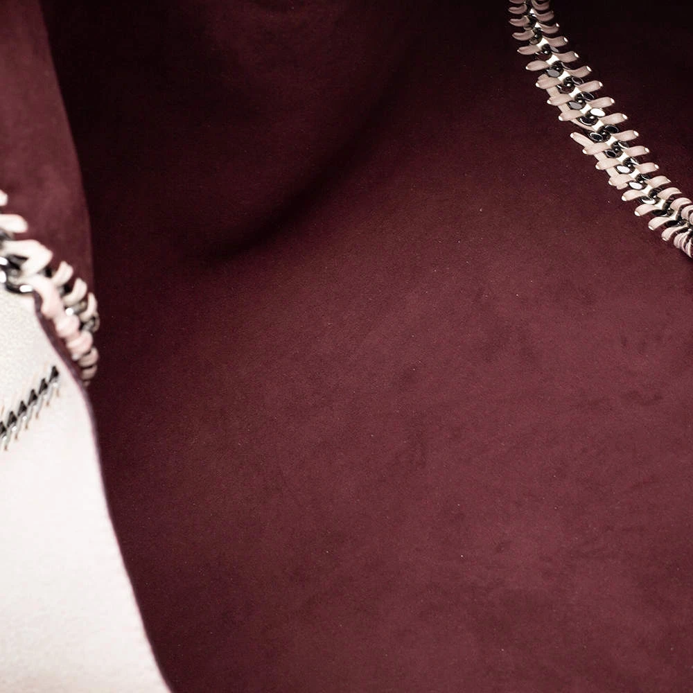 This elegant tote is from the house of Stella McCartney. Designed with one side in iridescent faux leather and the other in maroon suede, the bag has a versatile quality. It features dual chain handles and a spacious size. Swing it along for shopping, travels, or lunch with friends.