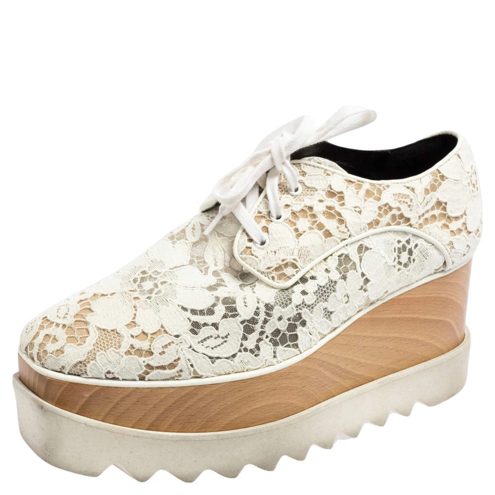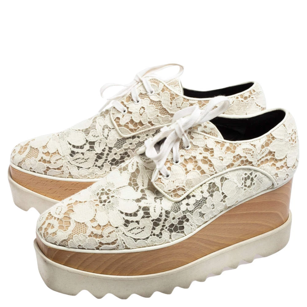 Stella McCartney exudes high style and unique fashion taste with these Elyse sneakers. They are brimming with exquisite details like the intricate white lace exterior, a chic silhouette, and thick platforms. They come with lace-ups on the vamps and white-toned hardware. Grab them today and express your fabulous style!