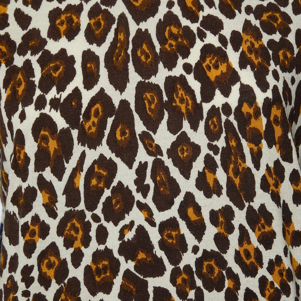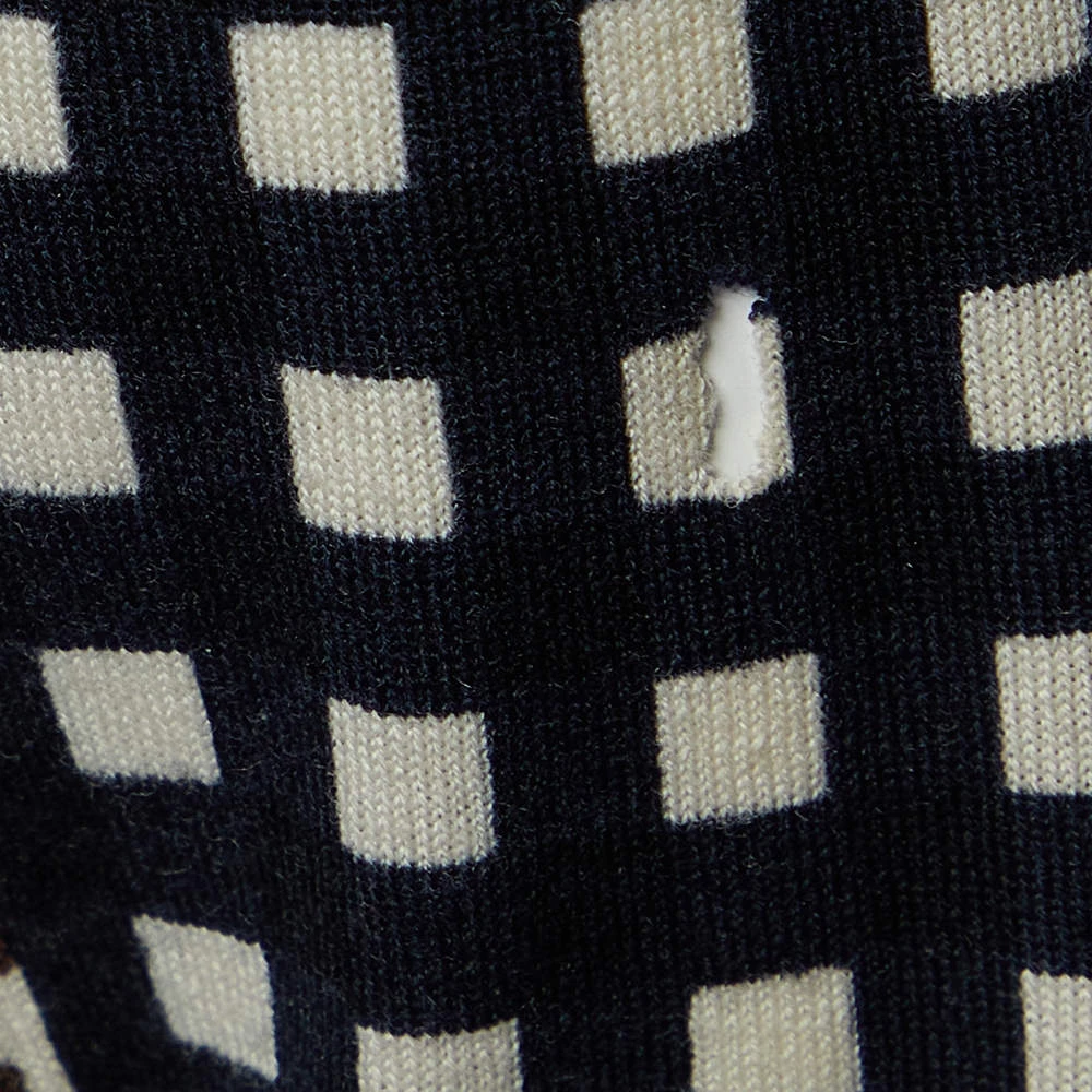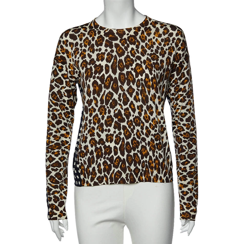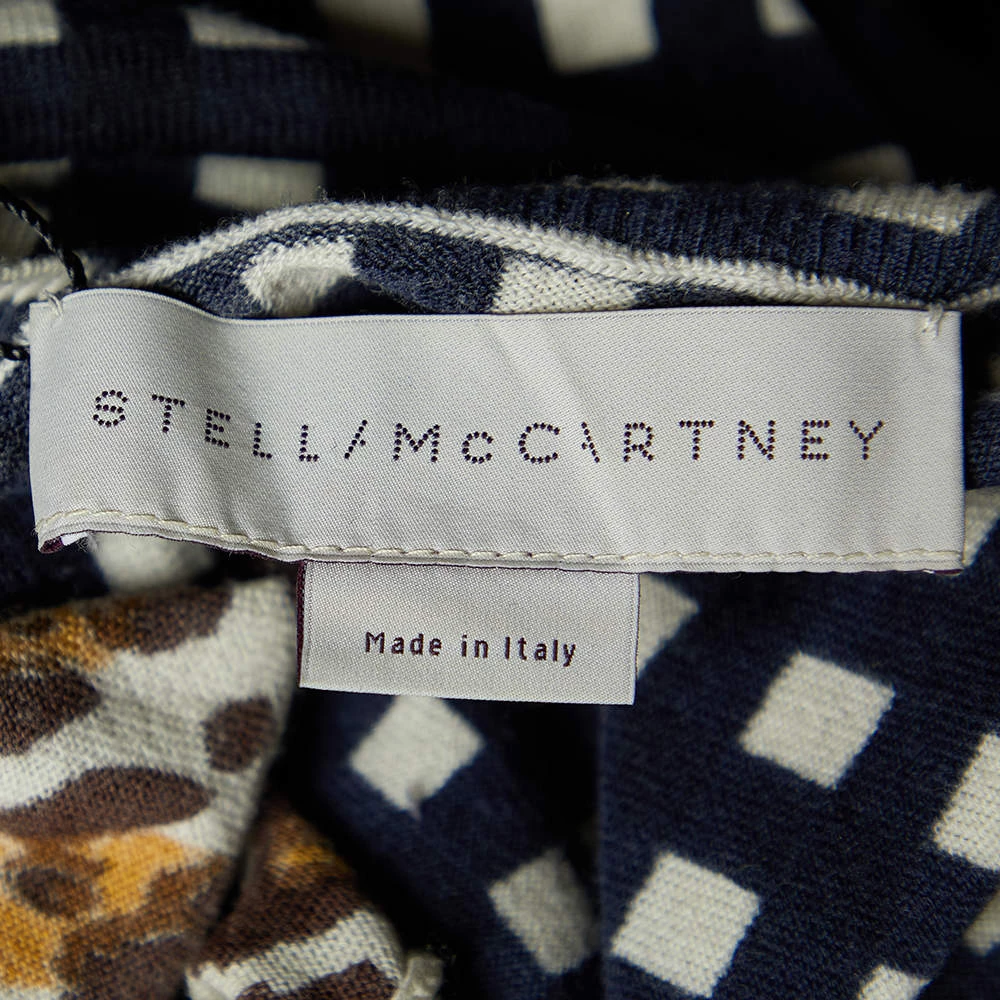 Featuring a leopard and check print on the wool fabric, this sweater from Stella McCartney grants a unique look. This sweater is a must-have garment for the winter. The dual printed aspect with long sleeves makes this sweater look chic and stylish. Pair with black pants and shoes as you step out.