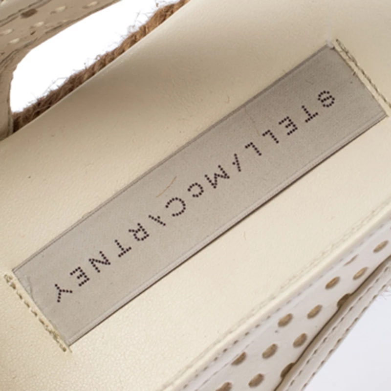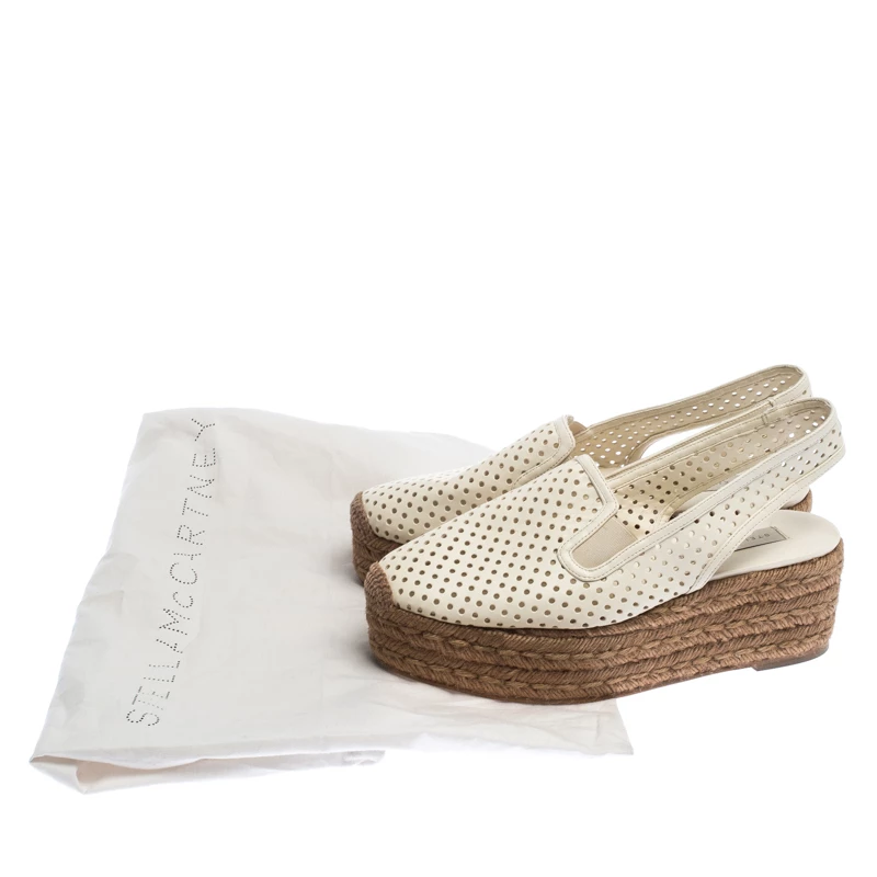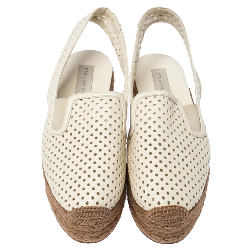 Stella McCartney’s designs always have an oomph factor to them and these funky and comfy wedges prove it too. Made from white perforated faux leather, this pair features slingback straps and stitched toes. Featuring 10 cm heels, these espadrilles wedges come with padded faux leather insoles.