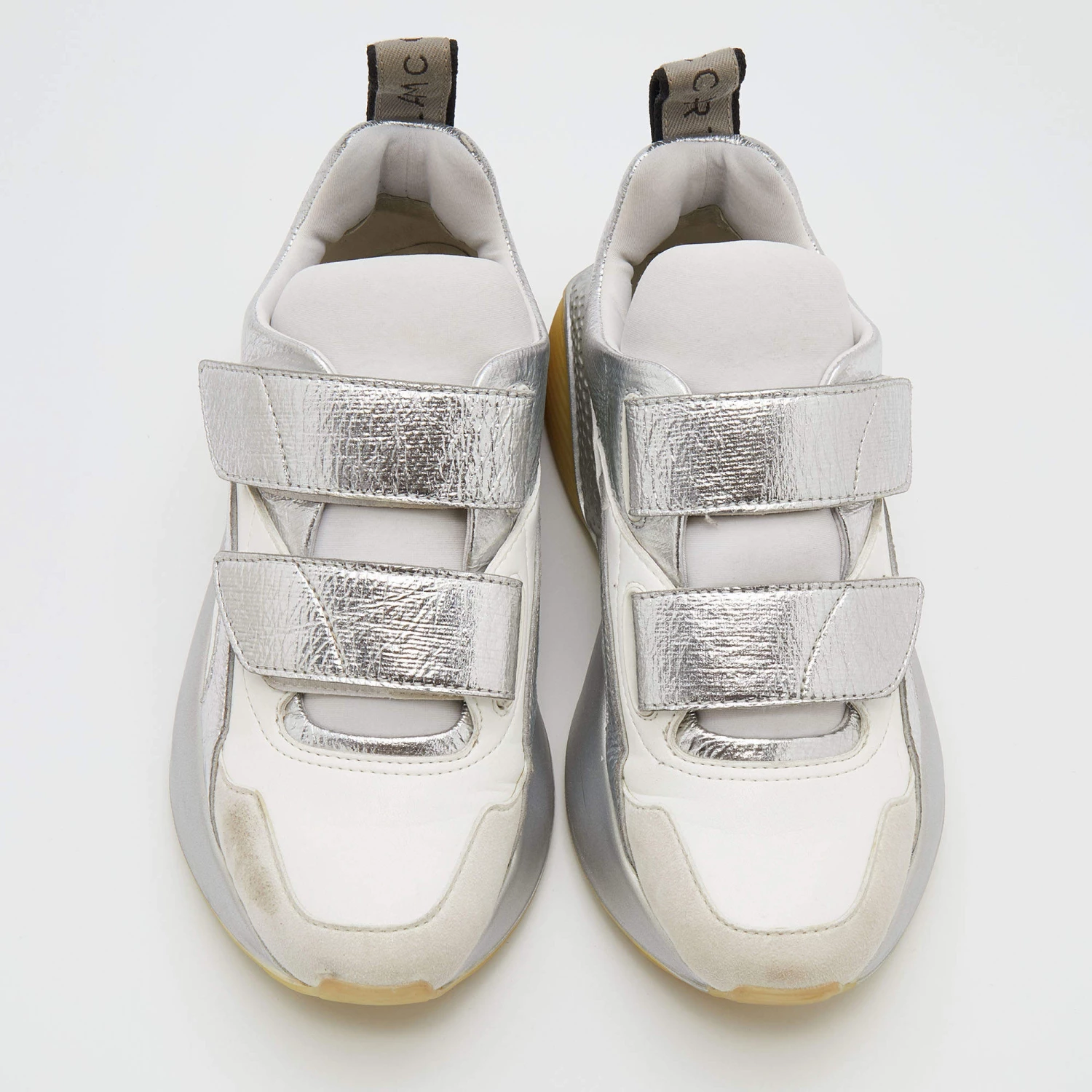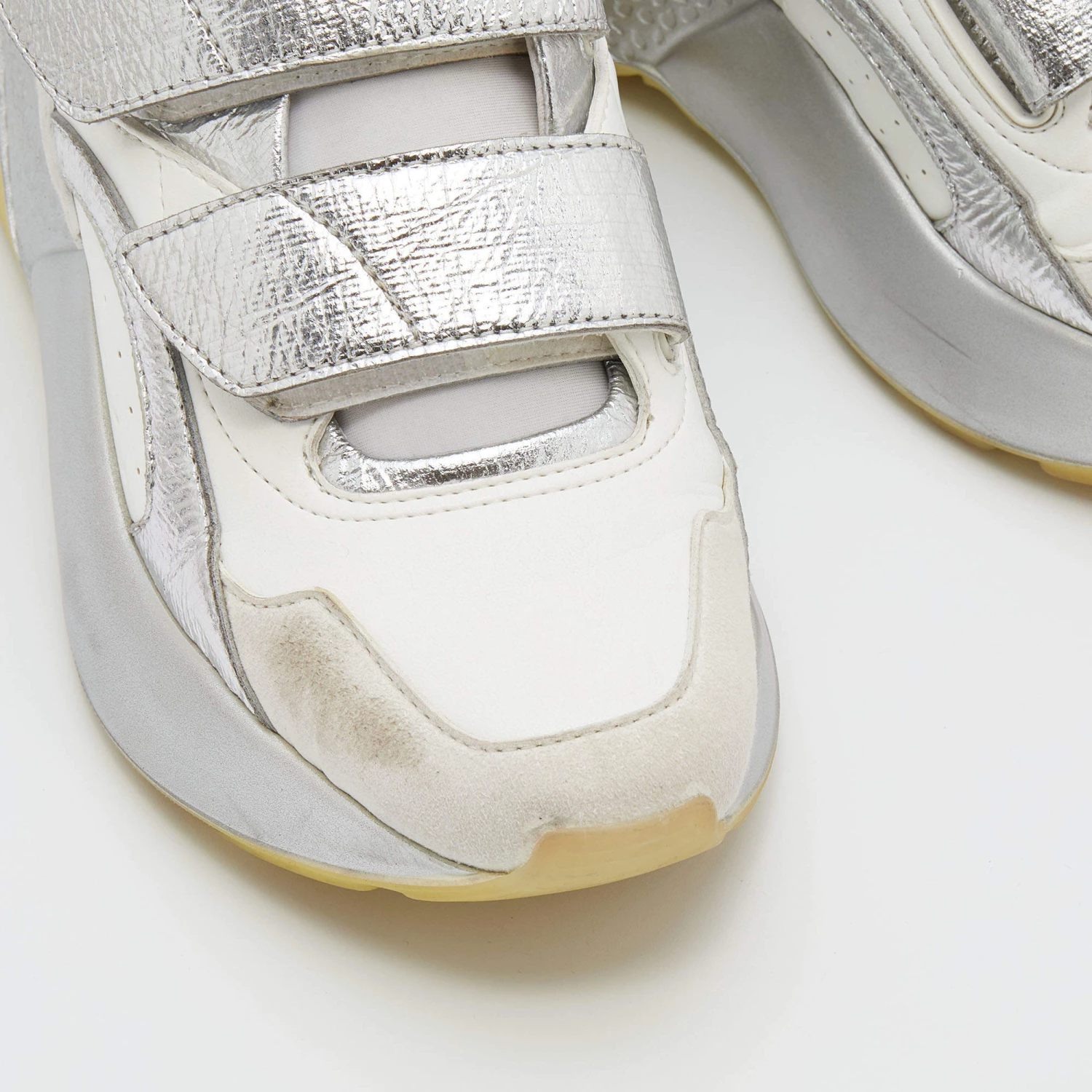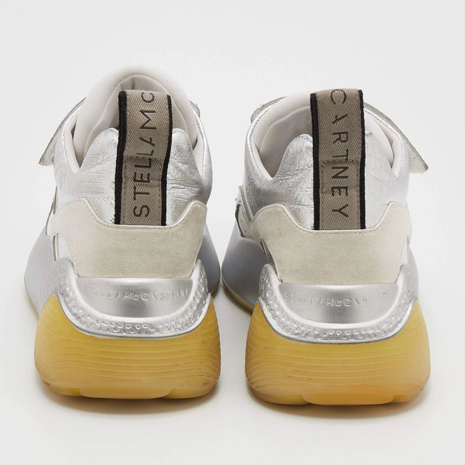 Stay in comfort with these sneakers from Stella McCartney. Crafted with a combination of faux leather and faux suede, this pair has textured rubber soles in contrasting tones along with velcro straps on the uppers. Smooth insoles complete these chunky Eclypse sneakers.