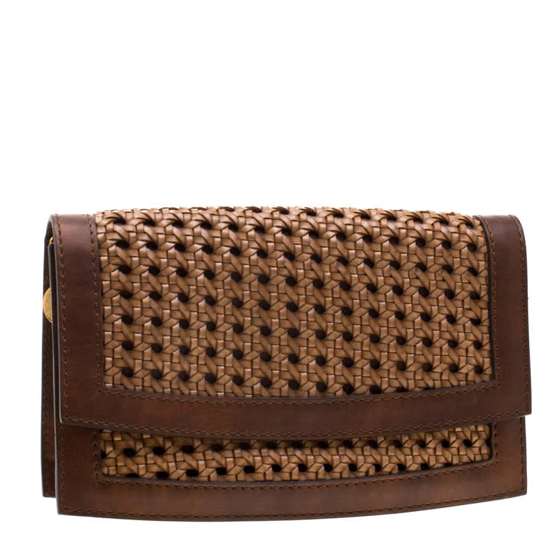This lovely clutch from Stella McCartney is crafted from faux leather and features a wonderful woven design on the exterior. It flaunts a front flap closure that opens to a faux leather lined interior with enough space to carry all your daily essentials. It is one creation you definitely need to get your hands on!