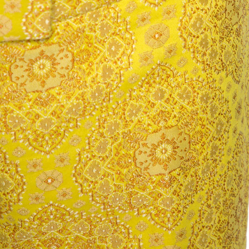 Flaunt these trousers from Stella McCartney. and make a statement everywhere you go. Crafted from cotton, it carries a bright yellow hue. It has a beautiful jacquard pattern throughout that adds interest. These tapered pants are styled with a zip closure, three pockets and a good fit. Pair with simple blouses and kitten heels for a polished look.