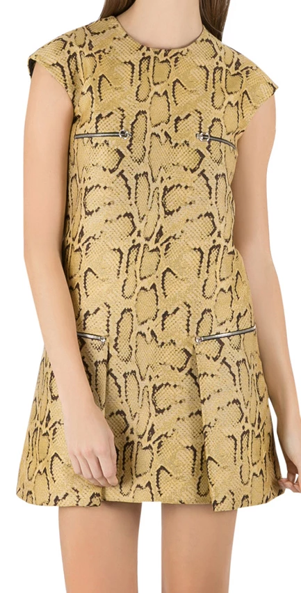 This mini dress is adorned with zip detail at the front. Stella McCartney has created this cotton-blend dress with yellow python pattern and flare hem. Team it with Alaia two-tone laser cut booties and beaded bracelet.