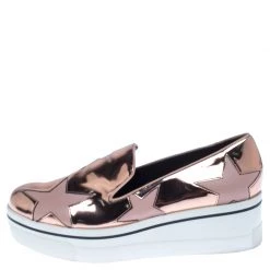 Stella McCartney Metallic Silver Faux Leather Binx Star Platform Slip On Sneakers Size 39 For Women