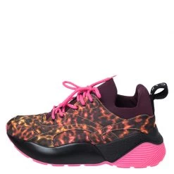 Stella McCartney Multicolor Leopard Print Fabric Eclypse Lace Up Sneakers Size 39 For Women
