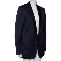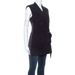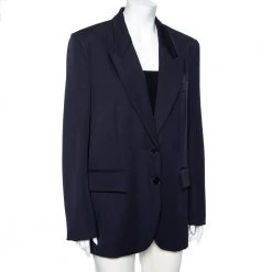 Stella McCartney Navy Blue Striped Wool Hi-Low Hem Jumper S For Women