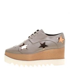 Stella McCartney Beige Faux Leather Frankie Pointed Toe Elastic Detail Loafers Size 39 For Women