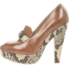 Stella McCartney Brown Faux Leather Python Effect Mary Platform Loafer Pumps Size 39 For Women