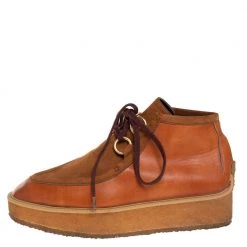 Stella McCartney Brown Faux Suede And Leather High Clipper Platform Ankle Boots Size 37 For Women