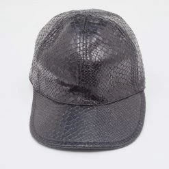 Stella McCartney Black Snake Embossed Faux Leather Baseball Cap For Women