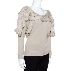Stella McCartney Beige Cashmere & Silk Chunky Knit Trim Sweater M For Women